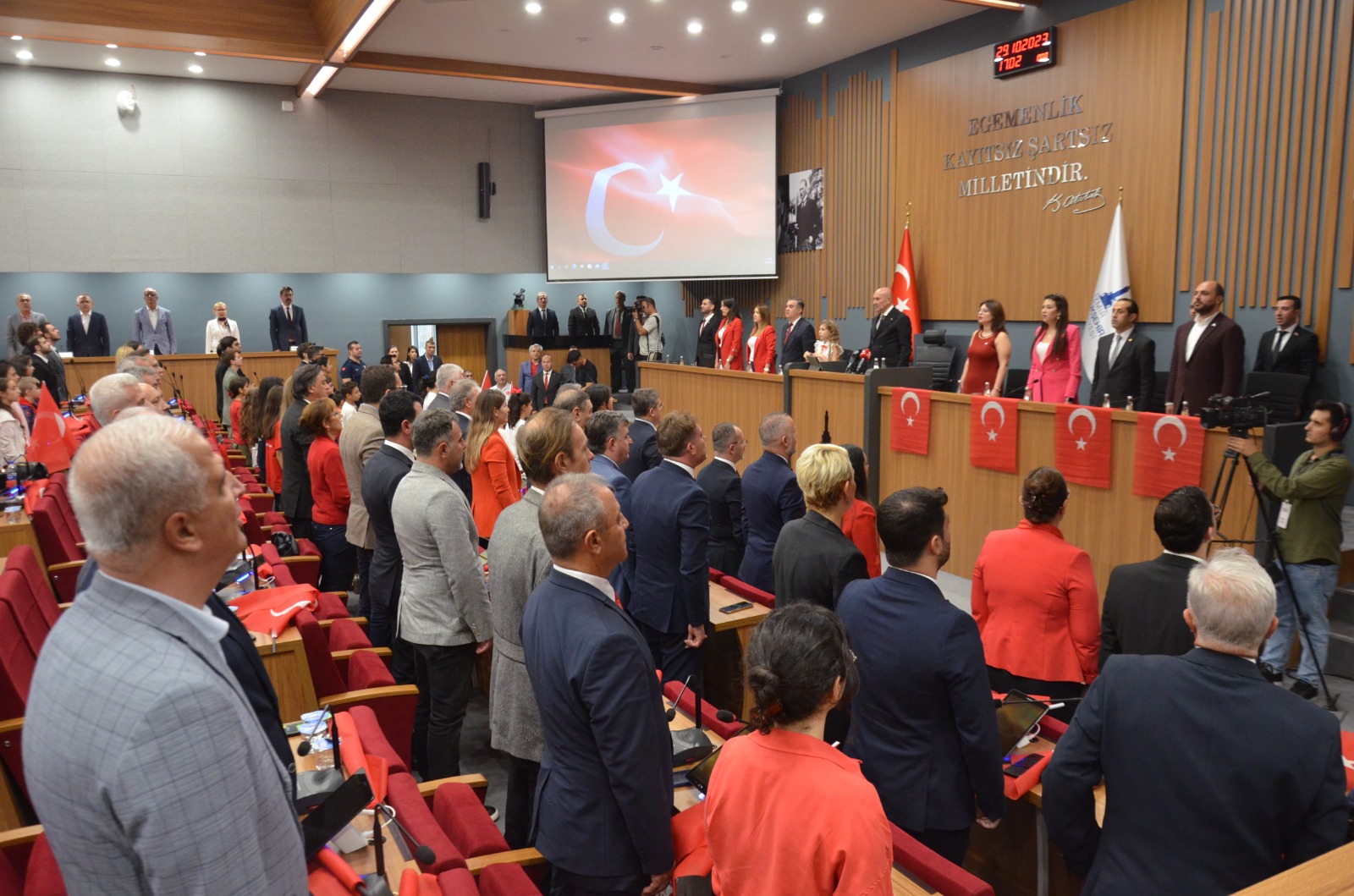 AGORAMEDYA- Türkiye Cumhuriyeti’nin 100. Kuruluş yıldönümü nedeniyle Belediye Başkanı Tunç Soyer idaresinde Cumhuriyet Bayramı özel oturumu düzenlendi.