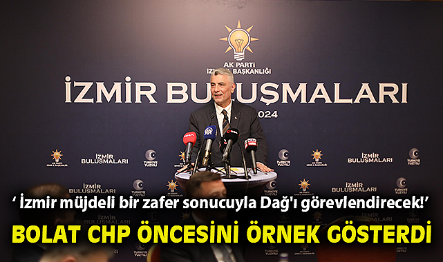 Türkiye'de AK Parti hükümetlerinin yaptığı çalışmalar dikkat çeken Bolat, "Cumhurbaşkanımız ve arkadaşları, 21 yıldan bu yana Türkiye'de büyük bir devrim yaptılar. Bu devrimin adı modernleşme, güçlenme, gelişme, özgürlüklerin, tamamen halka yayılması, elitiz-seçkinci anlayıştan hizmetkar, yönetime, hizmetkar, liderliğe doğru evrilme, dünyada dış politikasıyla, savunma sanayiyle, ordusuyla, ekonomisiyle güçlü bir ülke ve sözü dinlenen bir ülke konumuna ulaşmak, saygınlığa ulaşmak ve de mahalli yönetimlerde de ulaştırmadan altyapıya, işte kentsel dönüşümden, trafiğe, sanayi, tarım ve hizmetlerden ticarete şehirde, çevreden enerjiye, her alanda modern, yeri, halk için yaşanabilir, konforlu, çevreci ve kültür sanat faaliyetlerinin de gelişeceği bir belediyecilik modeli geliştirtirmekti. Bu çok büyük ölçüde başarıldı. Bunun İzmir'de de başarılmaması için hiçbir neden yok. İzmir demokrat bir şehirdir. 1950'de Demokrat Parti'nin kurulu güçlendiği daha daha sonra Adalet Partisi'nin burada güçlü olduğu belediyeyi yönettiği dönemleri hatırlıyoruz. Doğru Yol Partisi'ni hatırlıyoruz. Ve ilçelerde hatırlıyoruz. Dolayısıyla İzmir her zaman için demokrasi, özgürlük, gelişme, büyüme noktasında bir özlem duyar ve duyulan bir şehir oldu. 31 Mart'ta da İzmir'in inşallah müjdeli bir zafer sonucuyla bu başarıyı elde edeceğini ve Hamza Dağı ve arkadaşlarını inşallah belediye görevlendireceğine inanıyorum" diye konuştu.