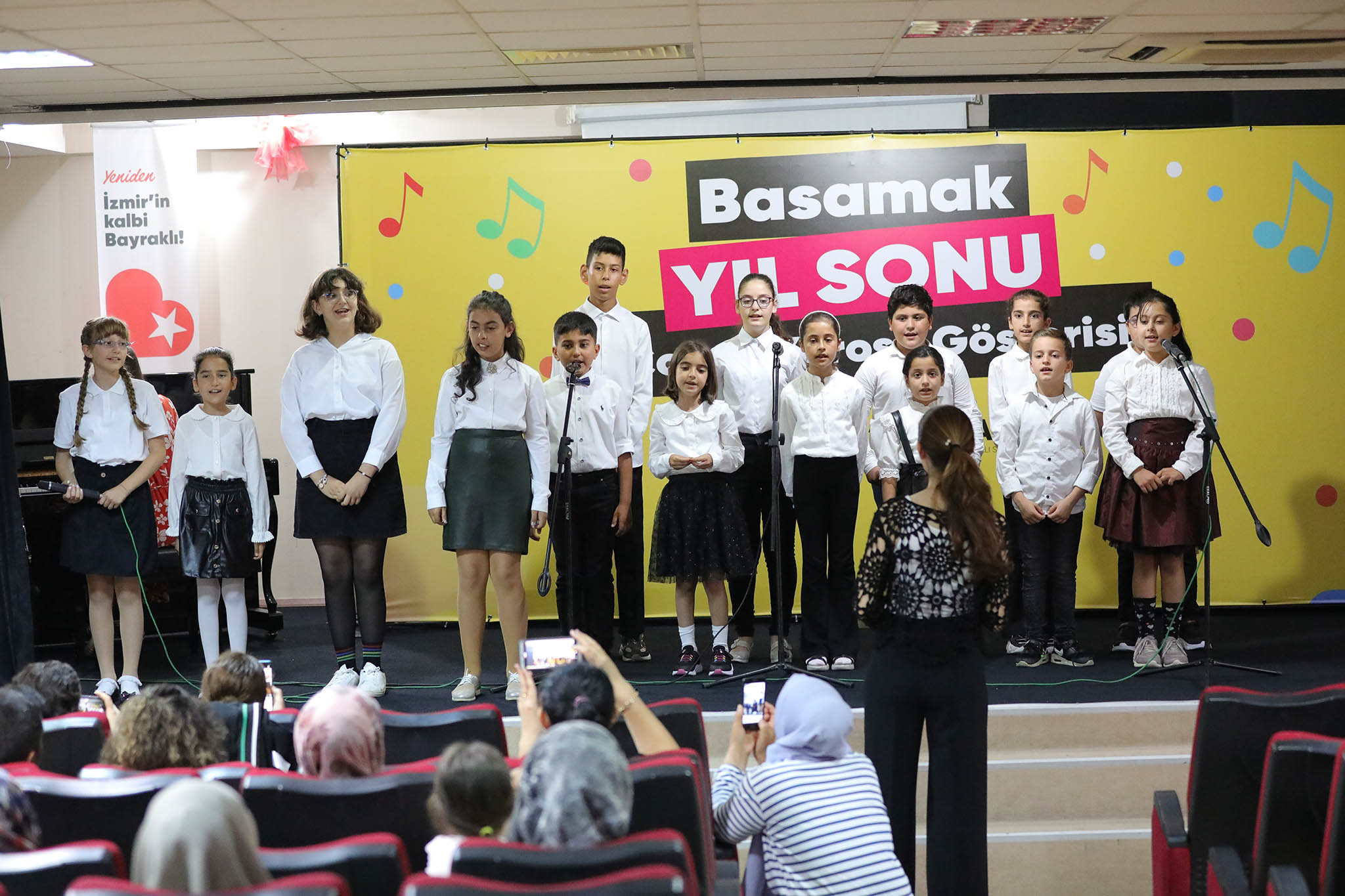 18 BRANŞTA BİNLERCE KURSİYERHerkes için sanat parolasıyla kültür-sanat ve hobi kurslarını Bayraklı Sanat ve Müzik Akademisi (BASAMAK), çatısı altında toplayan Bayraklı Belediyesinin kursiyerleri, yıl sonu gösterileriyle beğeni topluyor. Her yıl binlerce kişinin ücretsiz faydalandığı etkinlikler kapsamında 18 branşta kurs düzenleniyor. Kursiyerler, yıl boyunca öğrendiklerini de yıl sonu etkinliklerinde sahneye taşıyor. Bu kapsamda gösterilerin ilk gününde bayraklı belediyesi Çocuk Korosu, İhsan Alyanak Kültür Merkezi’nde performanslarıyla izleyenlerden tam not aldı. Çocukların hep bir ağızdan okuduğu marşlara ve şarkılara izleyenler de eşlik etti. Konser sonunda kursiyerler ayakta alkışlandı.