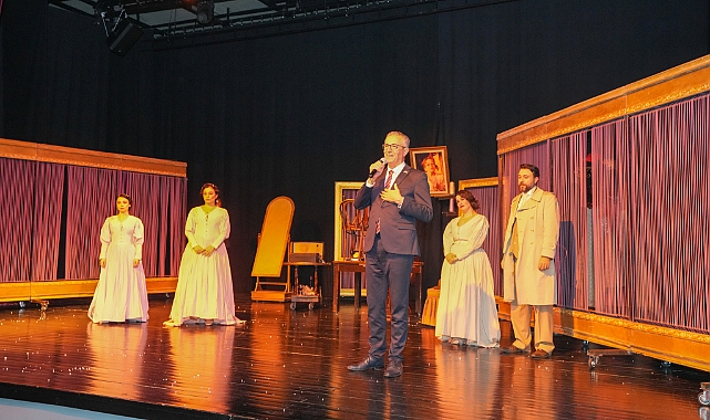 Oyunun sonunda sahneye çıkan Gaziemir Belediye Başkanı Halil Arda, “10. Yıl Marşı’nı tam 90 yıldır çok büyük coşkuyla okuyoruz. Peki neden o kadar coşku var o marşta hiç düşündünüz mü? Çünkü cumhuriyetin kazanımlarını, 10 yılda yaşarak çok iyi anlayan insanlar o kadar güzel kutlamışlar ki, aradan geçen 90 yıla rağmen o marştaki coşku halen yüreğimize dokunuyor. Cumhuriyetin en önemli kazanımlarından biri kadınlara hak ettiği değeri vermek. Bugün en çok kadınların sesi çıkması gerekiyor. Kadınların ayağa kalkarak cumhuriyete sahip çıkmaları gerekiyor. 10. yılda marş besteleyen bu ülke 100. yıla sessiz sakin giriyor. Ama burada biz varız. İzmir’in dağlarındaki çiçekleri soldurmayacağız” diye konuştu.
