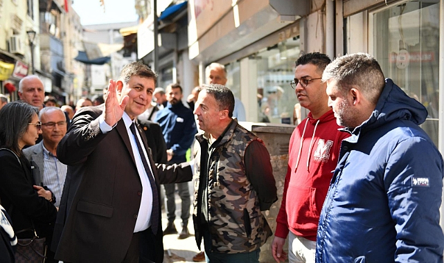 CHP İzmir Büyükşehir Belediye Başkan Adayı Dr. Cemil Tugay, Tarihi Kemeraltı Çarşısı esnafını ziyaret etti. Konak Belediye Başkanı Nilüfer Çınarlı Mutlu'nun da katıldığı ziyarette ilk durak İzmir Milli Kütüphane oldu. Kütüphanede çalışanlara da selam veren Tugay, öğrencilere başarılar diledi.