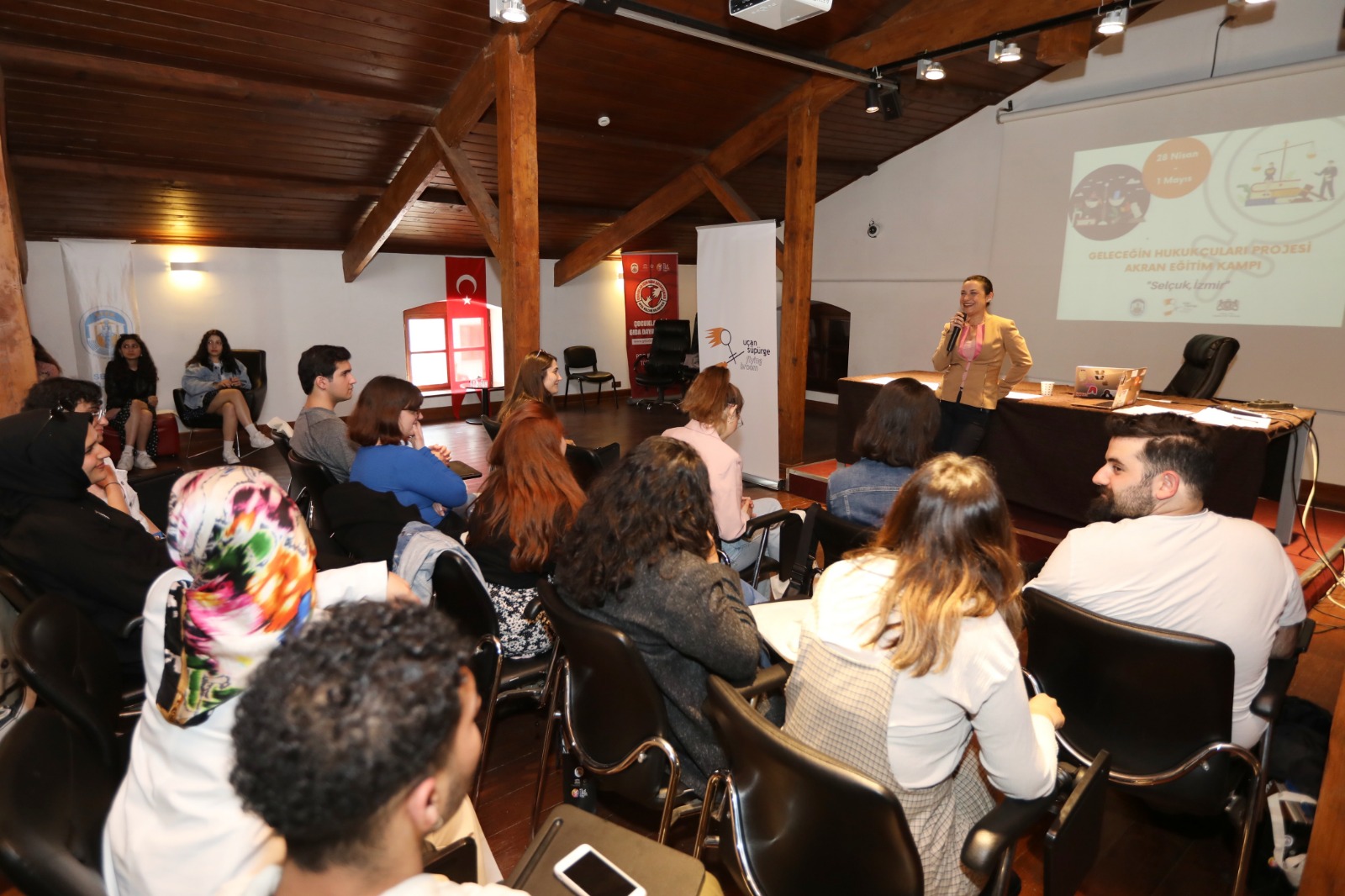KADER DEĞİL KARARLA…Söyleşinin açılış konuşmasını yapan Uçan Süpürge Vakfı Yönetim Kurulu Başkanı Halime Güner siyasette kadın temsil oranlarına değinerek; “Efes Selçuk çok özel olarak seçtiğimiz bir yer. Biz aslında kader değil kararla yaşanan bütün adaletsizliğin ikliminin üstesinden nasıl geliriz diye bunu mesele etmiş kadın örgütlerinin bir anlamda geniş bir çerçevesini temsil ediyoruz. Adaletsizlik derken yakında seçimler var. Bu rakamı unutmayın. Birlikte karşılaştıracağız. Meclisin şu anda yüzde 83’ü koltuklarında oturan erkekler. Yerel yönetimlerin yüzde 97’si koltuklarında oturan erkekler. Ne kadar ayrıcalıklı bir yerdesiniz?” dedi.ÖNCE İNSAN OLMAKKampa katılan öğrencilerin büyük bir kısmının kadın olduğuna dikkat çeken Başkan Ceritoğlu Sengel; “Doğru bir kente geldiniz. Çünkü tam olarak tarihin esasındasınız. O kadar ki bu iş 8600 yıllık kesintisiz bir tarih demek. Ve de bir kadın kentindesiniz. Kibele’den başlayan Artemis'e devam eden ve her şeyden önce Amazonlarla esasen başlayan ve seyri içerisinde de Meryem Ana’nın da burada olmasıyla dişi ve bereketli topraklardasınız. Çok enteresan bahsettiğim söylemlerin hepsi 8600 yıl önceki bir tarihe dayanıyor olsa da ancak 21.yüzyılda bir kadının belediye başkanı olabilmiş bir yerdesiniz. Bunu neden söylüyorum? Belediye başkanlarının sadece yüzde 3’ü kadındır, mecliste de sadece yüzde 12- 13 gibi bir temsili vardır kadının. Birçok noktada da temsilimizi arttırabilmemiz adına yapmamız gerekenler daha cesur davranmamız gerekenler, atacağımız adımlardan korkmamamız gereken anlar var. Bu anlamda bizlerin buluşmasının önemli olduğunu düşünüyorum. Çünkü eğer tamlamanın içerisinde adalet varsa, adil olmak varsa, eşitlik varsa daha özgür bir yarın gibi bir ümidimiz varsa her şeyden önce kimliklerimize sahip çıkmak da var. Bu kimliklerimizin içerisinde önce insan olmak, orijin kesinlikle o” dedi. YAŞAMIN KENDİSİNİ SEÇTİNİZHukuk öğrenimi görmenin bireyi birçok yönden donanımlı hale getirdiğini belirten Başkan Ceritoğlu Sengel; “Yaşamın kendisini görüyorsunuz aslında. Hukuk dediğiniz şey biraz öyle. Her şeyden anlıyor hale gelirsiniz. Hayatın kendisi içerisinde hukuka ihtiyacımız var zaten. Böyle bir gerçeklik var. Kendi hakkımızı savunmada, herhangi bir sıkıntıda bile işin içerisinde hukuk girer. O yüzden doğru bir fakülte seçtiniz. Çünkü siz yaşamın kendisini seçtiniz aslında. İnsanlar arasındaki ilişki bir hukuk. Ağzınızı açtığınız andan itibaren başlar zaten hukuk. O anlamda bundan sonraki hayatınızın evrelerinde ne olmak isteyeceğinize siz karar vereceksiniz. Tavsiyemdir, her zaman zevk aldığımız işi yapın” dedi.Hukuk öğrencileriyle hukuka dair filmler üzerine de konuşan Başkan Ceritoğlu Sengel; “Hayat böyle bir şey. İzlediğiniz bir film, okuduğunuz bir şiir, seyrettiğiniz bir tiyatro, dinlediğiniz bir konuşmacı, örnek aldığınız ya da almadığınız, yanlış olduğunu düşündüğünüz ya da düşünmediğiniz ama hayatına vakıf olduğunuz birisi bir yerden size feyz olur. Eğer bir nebze feyz olabildiysem ne mutlu bana. Teşekkür ederim, tekrar Efes Selçuk’a hoş geldiniz” dedi.
