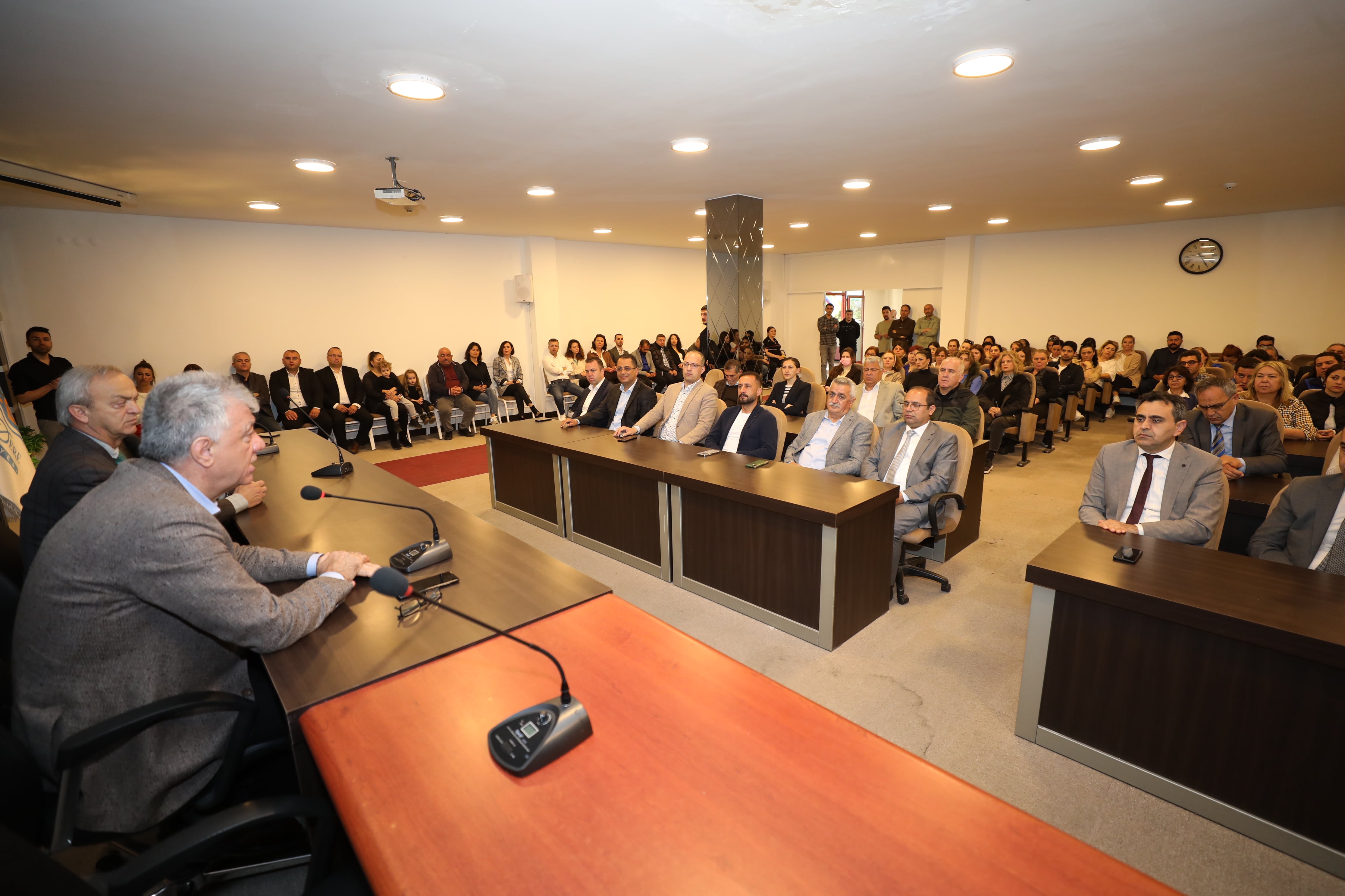 UMUT BİZİ AYAKTA YAŞATIRDaha sonra Belediye Hizmet binasına geçen Başkan Engin, belediye bürokratlarının ve çalışanların bayramını kutladı. Belediye Meclis Salonu’nda çalışma arkadaşlarına seslenen Başkan Engin, “Pandemiden başlayan süreçle birlikte ülkemiz ve insanlık iyi günler geçirmedi. Depremlerle sarsıldık, binlerce canımızı kaybettik. Yitirdiğimiz canlarımıza bir kez daha Allah’tan rahmet diliyorum. Bu zorlu günlerin üstesinden ancak birlik olabilirsek gelebiliriz. Eğer tedbir almazsak, birlik ve beraberliğimizi sağlayamazsak 5 yılda yapacağımızı 50 yılda zor yaparız. Geleceğimize sahip çıkmalı, çocuklarımızı iyi yetiştirmeliyiz. Umutlu olmalıyız. Unutmayalım ki umut bizi ayakta tutar, umut bizi yaşatır. Bu umutla belediyemize hizmet veriyor, vatandaşlarımız için çalışıyoruz. Sınırlı gelirlerimizi halkımızın refahı için kullanıyoruz. Her türlü zorluğa rağmen göreve geldiğimiz günden bugüne seçim bildirgemizde yer alan vaatlerimizin çoğunu yerine getirmeyi başardık. Bunları hep birlikte yaptık. Demokrasinin en temel kurumları arasında yer alan belediyelerimizi güçlendirmemiz, sahip çıkmamız gerekiyor. İnanıyorum ki hep birlikte daha güzel işler yapmaya devam edeceğiz. Hepinize ailelerinizle birlikte, huzurlu ve mutlu bayramlar diliyorum” diye konuştu.