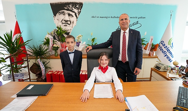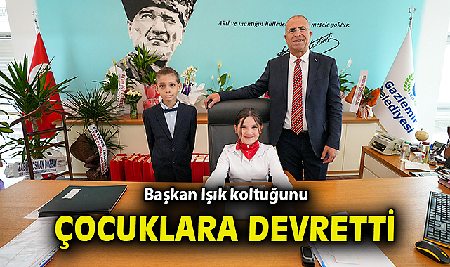 Gaziemir Belediye Başkanı Ünal Işık, 23 Nisan Ulusal Egemenlik ve Çocuk Bayramı nedeniyle koltuğunu üç öğrenciye bıraktı. İlkokul 4. sınıf öğrencileri Alya Su Gücün, Ahmet Deniz Faraş ve Aybars Tuna Kurnaz sırayla belediye başkanlığı koltuğuna oturdu.