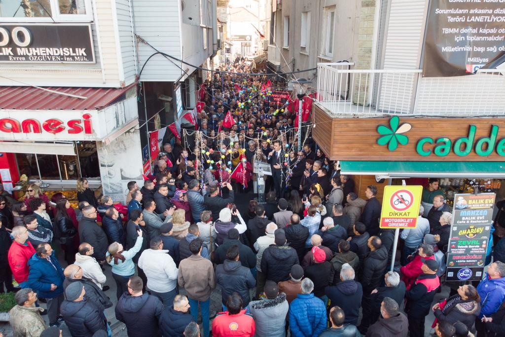 CHP Dikili İlçe Başkanı Emre Kırlı'nın yaptığı açılış konuşması sonrasında coşkulu kalabalığa seslenen Dikili Belediye Başkanı Adil Kırgöz şu açıklamalarda bulundu "29 Ocak akşamı partimizin en üst karar organı olan Merkez Yürütme Kurulumuz ve Parti Meclisimiz tarafından yeni dönem için tekrar Dikili Belediye Başkanı adaylığına layık görüldüm. Öncelikle beni bu göreve bir kez daha layık gören Genel Başkanımız Sayın Özgür Özel başta olmak üzere Merkez Yürütme Kurulu ve Parti Meclisi Üyelerimize, bu süreçte bizlere hep destek olan il, ilçe örgütümüze ve her zaman desteğini arkamda hissettiğim saygıdeğer Dikili halkına şükranlarımı sunuyor, teşekkür ediyorum.Geçen dönem olduğu gibi yeni dönemde de Türkiye Cumhuriyeti'nin kurucusu, kurtuluşun partisi Cumhuriyet Halk Partimizin semsiyesi altında olmakla birlikte tüm Dikili'yi kucaklayan bir anlayışla yeni dönemde de herkesin başkanı olmaya devam edeceğiz. 5 yıl boyunca gecemizi gündüzümüze kattık, hep çalıştık, hep ürettik. Bu dönem ustalık dönemimiz, çok iyi hazırlandık. Hep birlikte bir olmaya birlik olmaya devam edeceğiz. Yeni dönemde de Cumhuriyet değerlerini sözde değil özde benimsemiş Atatürk İlke ve Devrimlerini rehber edinmiş bir anlayışla Dikili için gece gündüz çalışmaya, üretmeye devam edeceğiz."Büyük buluşma sonrası Dikili Belediye Başkanı Adil Kırgöz, desteğe gelen çok sayıda vatandaşla birlikte esnafı ziyaret ederek bol kazanç dileklerinde bulundu.