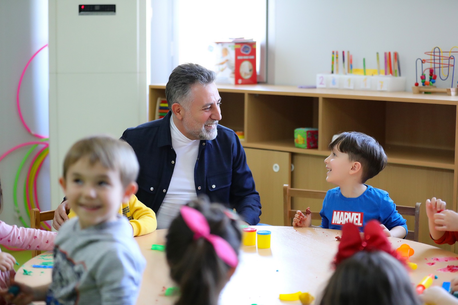 23 nisan Ulusal Egemenlik ve Çocuk Bayramı öncesinde Ayda Bebek ve Elif Bebek anaokullarını ziyaret eden Başkan Sandal öğrencilerle bir araya geldi. Çocuklarla sohbet edip, öğretmenlerden de eğitimlerle ilgili bilgi alan Başkan Sandal “Katılımcı, demokratik, çevreci ve bilimsel bir eğitim modeliyle çocuklarımızı yarınlara hazırlıyoruz. Eğitim modelimiz ve her gelir düzeyine uygun ücretlendirme politikamızla da Türkiye’ye örnek oluyoruz. Elif ve Ayda Bebek Anaokullarımızın ardından, Postacılar ve 75. Yıl’da da yeni kreşlerimizi hizmete açacağız” dedi.