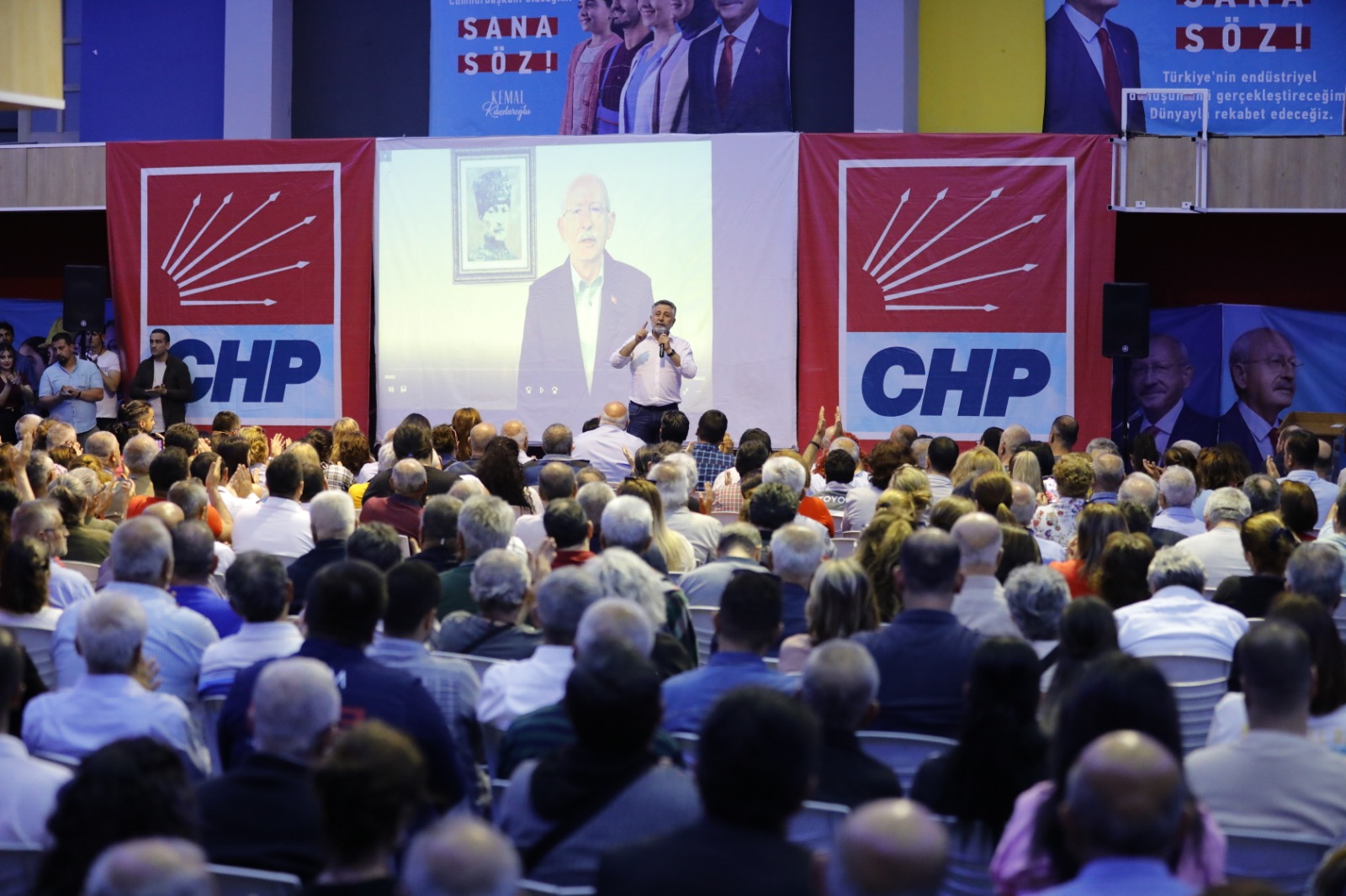 CHP İlçe Seçim Koordinasyon Merkezi’nde düzenlenen toplantıya Başkan Sandal’ın yanı sıra CHP Bayraklı İlçe Başkanı Didem Gültekin, meclis üyeleri, il ve ilçe yönetim kadroları, eski yöneticiler ve gönüllülerden oluşan bine yakın partili katıldı. Etkinlikte CHP Genel Başkanı tarafından hazırlanan videoların gösterimleri yapıldı. Birlik ve beraberlik mesajları verildi.