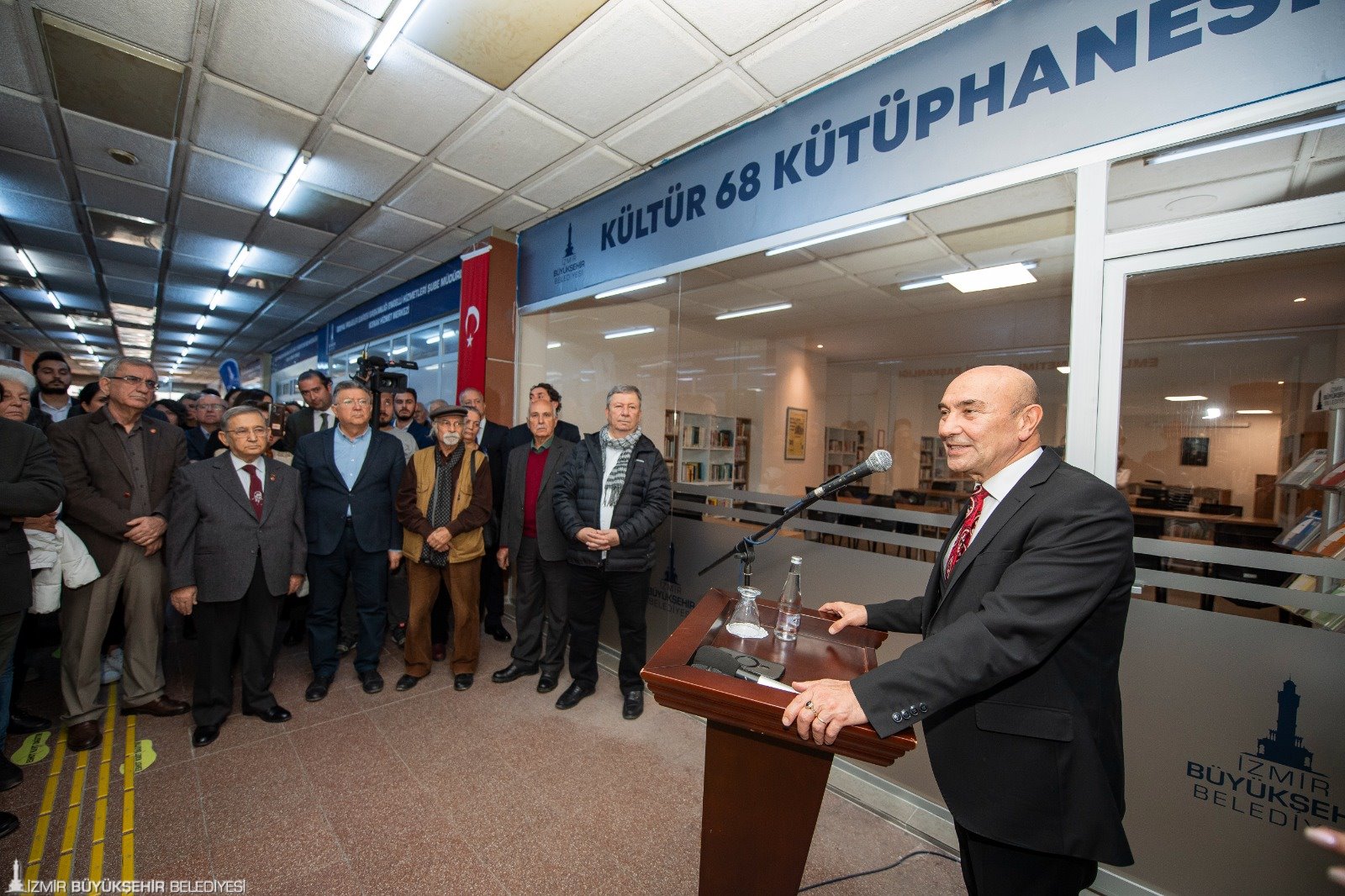 Konak Center içinde yer alan kütüphanenin açılışında konuşan Büyükşehir Belediye Başkanı Tunç Soyer, 68’lilerin kendini feda eden bir kuşak olduğunu belirterek, “Bu kadim kültürün evlatları 1920’lerde yine kendilerini feda ederek, vakfederek üzerinde yaşadığımız ve vatan diye tarif ettiğimiz bu toprakları bize bıraktılar. 68’ler belki de insanlığın biriktirdiği en büyük erdemlerin, değerlerin süzülerek bu topraklara aktarılmak istendiği bir zaman dilimiydi. Ve her birinin aziz hatırları önünde saygıyla eğiliyorum” dedi.
