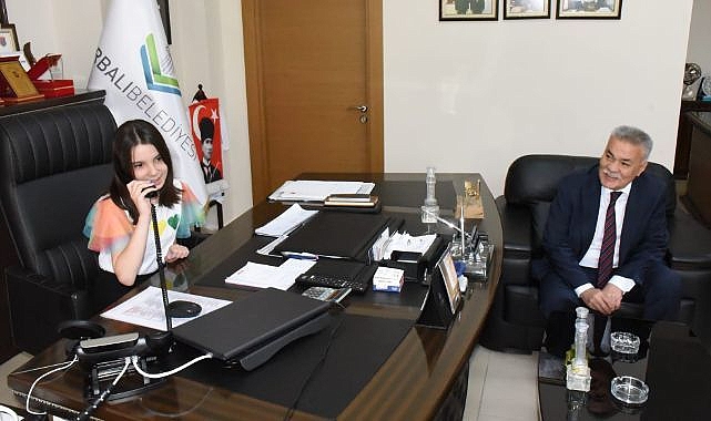 Torbalı Belediye Başkanı Mithat Tekin, 23 Nisan Ulusal Egemenlik ve Çocuk Bayramı dolayısıyla makam koltuğunu bir günlüğüne 5. sınıf öğrencisi Işıl Çakmak’a devretti.