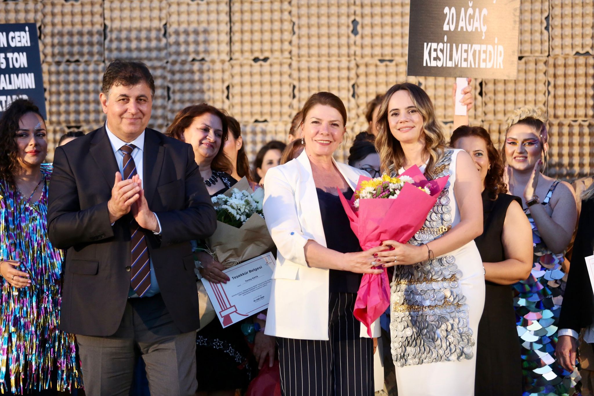 İHTİYACIN KADAR TÜKETTiyatro gösterisi öncesi çevre ve doğa duyarlılığına ilişkin konuşan Karşıyaka Belediye Başkanı Dr. Cemil Tugay, iklim değişikliği ile mücadelenin herkesin katılımıyla kolayca yürütülebileceğine vurgu yaptı. Yurttaşların duyarlılığıyla daha etkili mücadele yürütülebileceğini söyleyen Tugay, “Daha mavi, daha yeşil bir dünyada yaşamak bizim elimizde. Daha yeşil şehirler yaratmak ve doğaya saygı duyan yaşam alanları oluşturmak insanlık için uzak bir hedef değil. Biz doğa ile uyumlu bir çevrede yaşamak istiyoruz ve çocuklarımıza bırakacağımız en büyük mirasın doğamız ve çevremiz olduğunu aklımızdan çıkarmıyoruz. Ekolojinin, ekonomiye yenilmediği; havanın, toprağın, suyun kirletilmediği sürdürülebilir bir yaşamı mümkün kılmak bizim elimizde. Basit önlemler alarak, küçük duyarlılıklarla fark yaratarak doğamızı, çevremizi korumak mümkün. İhtiyacın kadar tüket ve mümkün olduğunca daha az atık üret. Uygulanacak ilke bu kadar basit. Ama herkes önce başkasının yapmasını bekliyor. Bu önlemler ihtiyacımız olmayan bir lambayı kapatmak kadar basit. Eğer bu ilkeye uymazsak bir şeyleri artık geri dönüştüremeyecek kadar tüketeceğimizi ve kirleteceğimizi hepimizin bilmesi lazım” dedi.ÇEVRE SORUNU OLMAYAN BİR DÜNYA HAYALİKarşıyakalıların çevre konusundaki duyarlılığına değinen Başkan Tugay, “Karşıyaka’mızda iklimle ilgili, çevreyle ilgili yürüttüğümüz çalışmalara beklediğimizin üzerinde destek alıyoruz. Bu kadar duyarlı insanlarla birlikte olmaktan mutluluk duyuyorum. Çevre sorunlarını sık sık dile getirmekten vazgeçmeyeceğiz. Çevre sorunlarını konuşmaya ihtiyaç duymadığımız bir dünya hayaliyle çalışıyoruz. Bu duyarlılığı her zaman göstermeli, çevremizde farkındalık yaratarak duyarlılığın yayılmasını sağlamalıyız” diye konuştu.