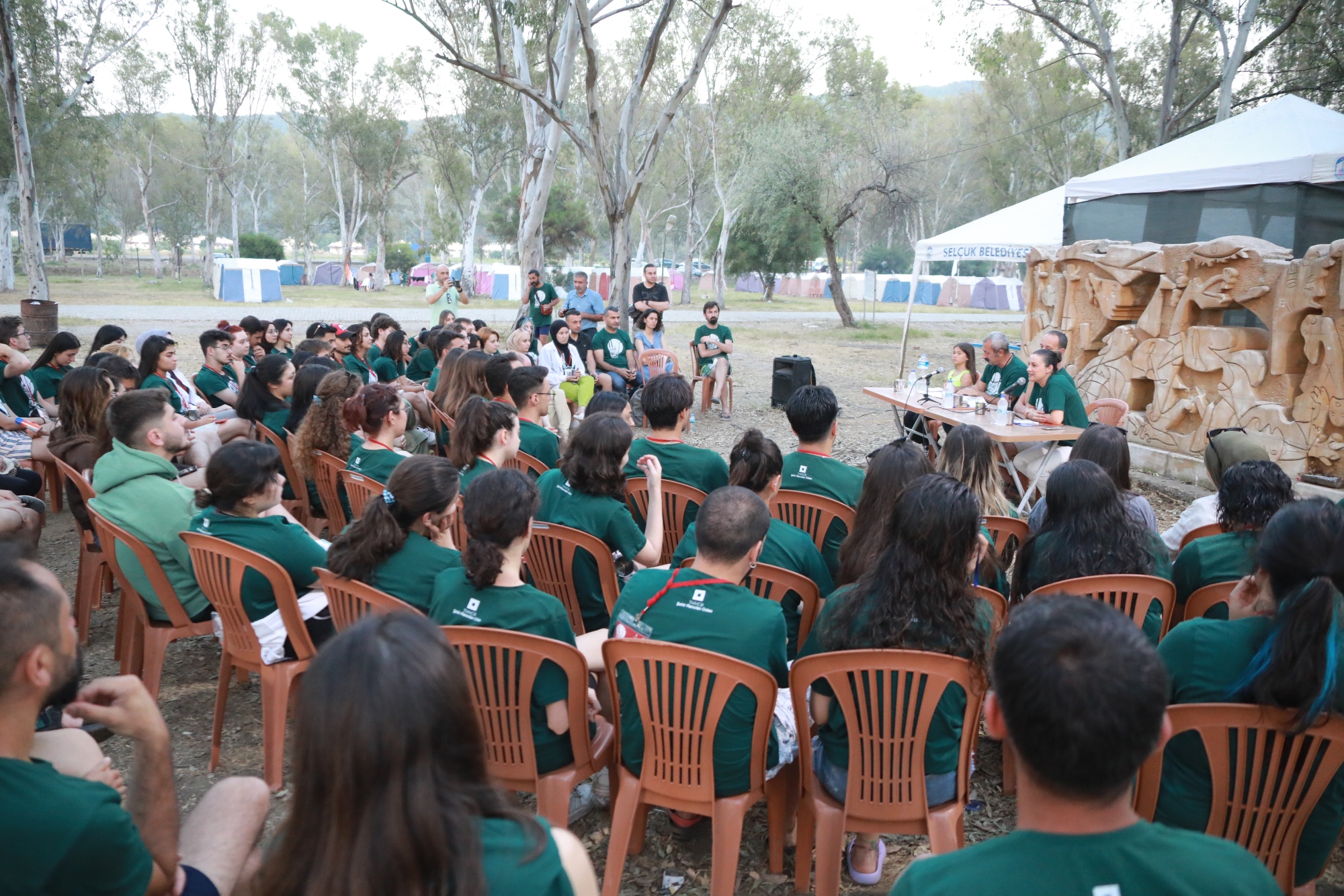 Geleceğin şehir plancılarına mesleklerinin önemini antik kanal ve Efes Antik Kenti’nde yapılan dijital müze üzerinden anlatan Başkan Ceritoğlu Sengel; “Şehir planı bir kenti hem koruyarak hem kollayarak hem de geliştirerek yapılması gereken bir şey. Bir kente bakış açınız, var olan değerleriyle bütünleştiği sürece doğru bir kompozisyon yazabilirsiniz. Her birinizden bir belediye başkanından öte hem bir büyüğünüz, bir ablanız, hem bir anne hem de kendini doğduğu yere, yaşadığı yere ait hisseden birisi olarak şunu rica ediyorum. Elinize kaleme alıp bir şehirle ilgili, bir kentle ilgili bir şeyler yazıp çizerken, sadece o kentin o anki durumunu değil, ondan sonra geçecek olan altmış yılını tasarlayacaksınız. Bu altmış yılın içerisinde insanların huzur içerisinde yaşayabileceği, yarın öbür gün gelişebilecek olan değerler dahilinde o kentin çok daha kucaklayıcı olabileceği ve o bütün değerlerin de ortaya çıkarılabileceği şeyleri tasarlayacaksınız. Benim için çok kıymetlisiniz. Çok uzun zamandan beri Efes Selçuk'a ve Pamucak’a sizin gibi öğrenciler geliyorlar. Ve biz her birinizden bir şey öğreniyoruz. Ancak her gelişimde de öğrencilere yeni bir problemimden bahsediyorum. Bu seneki problemim Efes Antik Kenti'nin içerisinde 2863’e muhalefet olabilecek şekilde yirmi bir metrelik, üç bin metrekarelik kapalı alan inşaatını yapan Kültür Bakanlığı'nın son olarak yap işlet devletidir. Bunu da size emanet ediyorum. Bence tartışmasında yarar olan ve bu kısasların nasıl ve ne şekilde önüne geçilebilir diye de tartışılması gereken bir konu olduğunu düşünüyorum. ” dedi.