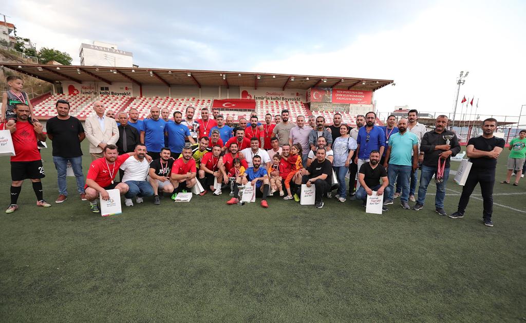 6 TAKIM KATILDIProfesyonel futbol müsabakalarını aratmayan bayraklı belediyesi Başkanlık futbol turnuvası kıran kırana müsabakalara sahne oldu. Doğançay Spor Tesisleri’nde gerçekleşen futbol turnuvasında 6 müdürlüğün takımı yarıştı. Bayraklı Belediyesi Başkanlık Turnuvası’na; Ulaşım Hizmetleri Müdürlüğü, Mali Hizmetler Müdürlüğü, Fen İşleri Müdürlüğü, Özel Kalem Müdürlüğü, Bay-Bel AŞ. İle Park ve Bahçeler Müdürlüğü futbol takımları katıldı. Çekişmeli karşılaşmalara ev sahipliği yapan turnuvayı TFF hakemleri yönetti. Turnuvanın şampiyonu Özel Kalem Müdürlüğü olurken, Park ve Bahçeler Müdürlüğü ikinciliği, Ulaşım Hizmetleri Müdürlüğü üçüncülüğü, Bay-Bel Aş ise dördüncülüğü elde etti. Şampiyonluk için ter döken belediye personelleri dostluk ve dayanışma duygularını pekiştirdi. Turnuva sonunda dereceye giren takımlara kupa, madalya ve çeşitli hediyeler verildi. Etkinliğe bayraklı Belediyesi Başkan Vekili Hulisi Başaran, başkan yardımcıları, bürokratlar, belediye personeli ve futbolcuların yakınları katıldı.