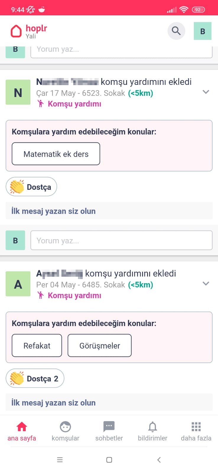Yenilikçi bir komşuluk uygulaması olan Hoplr, sadece aynı mahalle ya da ilçede yaşayan yurttaşların birbiri ile iletişim kurmasını ve dayanışmayı sağlamayı hedefliyor. Uygulamayı kullanan üyeler günlük hayatları paylaştıkları gibi mahalle içi sosyalleşme imkanına da sahip oluyor. Ayrıca pandemi ve deprem gibi geniş kapsamlı kriz anlarında ihtiyaç duyulan yardımın en yakından, komşulardan gelmesine olanak sağlıyor.TEST KULLANIMI TAMAMLANDIBelçika ve Hollanda’da yaygın şekilde kullanılan ve sevilen sosyal ağ uygulaması Hoplr, Türkiye’de ilk hizmet alanı olarak Karşıyaka’yı tercih etti. Atakent, Bostanlı, Mavişehir ve Yalı mahallelerinde test kullanımı gerçekleştiren uygulama, ilçenin tamamında kullanıma açıldığı için daha kapsamlı bir hizmet alanına erişmiş oldu. Test sürecinde komşular arası güvenli iletişim kurulması sağlandı. Birbiriyle tanışan komşular yardımlaşma ve sosyalleşme şansına erişti. Sivil inisiyatif ile kendi aralarında mahallelerinin sorunlarına çözüm önerileri geliştirip uygulama şansını yakaladılar. Deprem zamanı yardım toplamaktan, kiralık ev bulmaya, uzatma kablodan, tamirci ihtiyacına kadar birçok ihtiyaçta birbirlerine destek oldular.