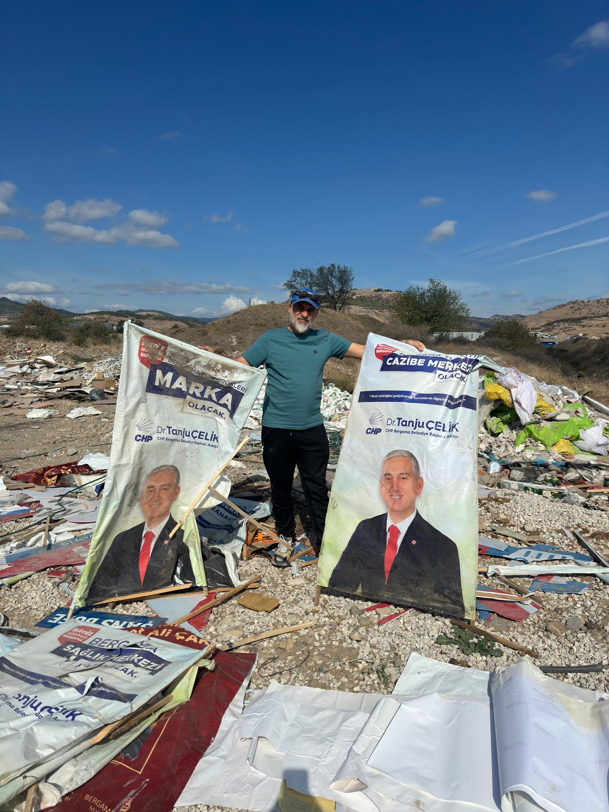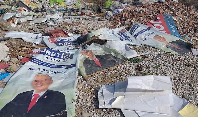 AGORA MEDYA - Bergama'nın çeşitli bölgelerinde çöp ve moloz atıklarına dair görüntüler gelmeye devam ediyor. Büyük çevresel felaketlere yol açabilme riskine rağmen çöp ve moloz atıklarının dere yatakları da dahil olmak üzere bilinçsizce dökülmeye devam ediyor.Bergamalı vatandaşlar, Bergama Belediye Başkanı Tanju Çelik ve belediye yetkililerine defalarca kez çağrı yapmasına rağmen hiç bir önlem veya toplama işlemi yapılmıyor.ÇELİK’İN AFİŞLERİ DE ÇÖPTE!Şehrin göbeğinde çöp ve atık görüntüleri artarak devam ederken trajikomik bir olay yaşandı. Çöplerin için Bergama Belediye Başkanı Tanju Çelik’in aday adayıyken kullandığı ve üzerinde ‘Bergama marka kent olacak ve Bergama cazibe merkezi olacak’ yazılı afişleri de yer alıyor.