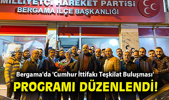 Cumhur İttifakı Milliyetçi Hareket Partisi İlçe Teşkilatında da ayrıca toplantı düzenlendi. Bergama’da seçim heyecanını şimdiden yaşadığını ifade eden İlçe Başkanı Engin, ''Teşkilat demek, başarı ve kazanmak demek. Teşkilat, zafer demek. Tüm teşkilatlarımız çok değerli. Bu yüzden bugün göstermiş olduğunuz birlik ruhundan dolayı tüm iltifatları hak ediyorsunuz'' dedi.