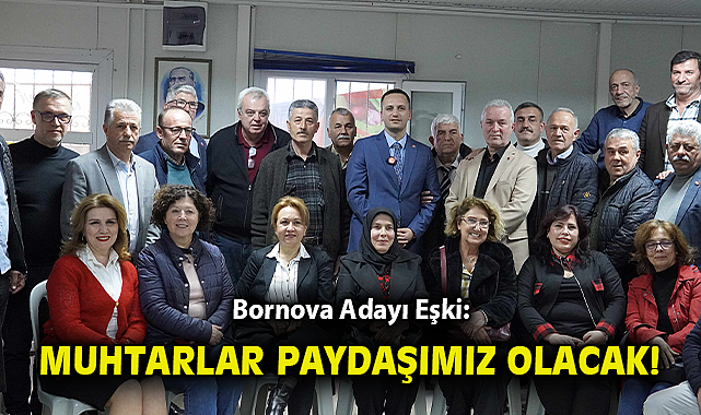 Bornova’da bulunan 30 mahallenin muhtarlarının katıldığı toplantıda konuşan Bornova Muhtarlar Derneği Başkanı Recep Çakmakçı, “Ömer Eşki hepimizin yıllardır tanıdığı, Bornova’yı da belediyeciliği de iyi bilen bir arkadaşımız. Gençliğinin enerjisiyle hiç zaman kaybetmeden, kısa sürede önemli hizmetleri hayata geçireceğine eminiz” dedi.Düzenli toplanacağızMuhtarlarla kesintisiz iletişimin en temel hedefleri olduğunu ifade eden Eşki, “Muhtar, devletin ilk basamağıdır. Vatandaşın derdini, ihtiyacını aktardığı ilk kurumdur. Biz de muhtarlarımızı bu anlayışla dinleyeceğiz. Biliyoruz ki muhtarımızın bir konuda talebi varsa, o talep mahallede öne çıkmış, yapılması gereken öncelikli bir konudur. Oradan gelen bilgi değerlendirilmiş, süzülmüş de gelmiştir. O nedenle de muhtarlar bizlerin gözü kulağı en yakın çalışma arkadaşıdır. Bu anlayışla muhtarlarımızla sık sık bir araya gelecek, düzenli toplantı ve çalışmalarla kendimizi nasıl geliştirebileceğimizi değerlendireceğiz” diye konuştu.Önce yerelde, sonra geneldeToplantıya CHP İlçe Başkanı Av. Ertürk Çapın ise partisinin muhtarlara değer veren, onların özlük hakları için en çok çalışan anlayışta olduğunu hatırlatarak, “Önce iktidarda olduğumuz yerel yönetimlerde muhtarlarımızı el üstünde tutacak, 2027’de kurulacak CHP iktidarında tüm sorunlarını çözeceğiz” dedi.