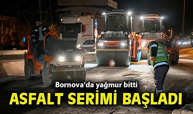 Bornova'da yağmur bitti, asfalt serimi başladı