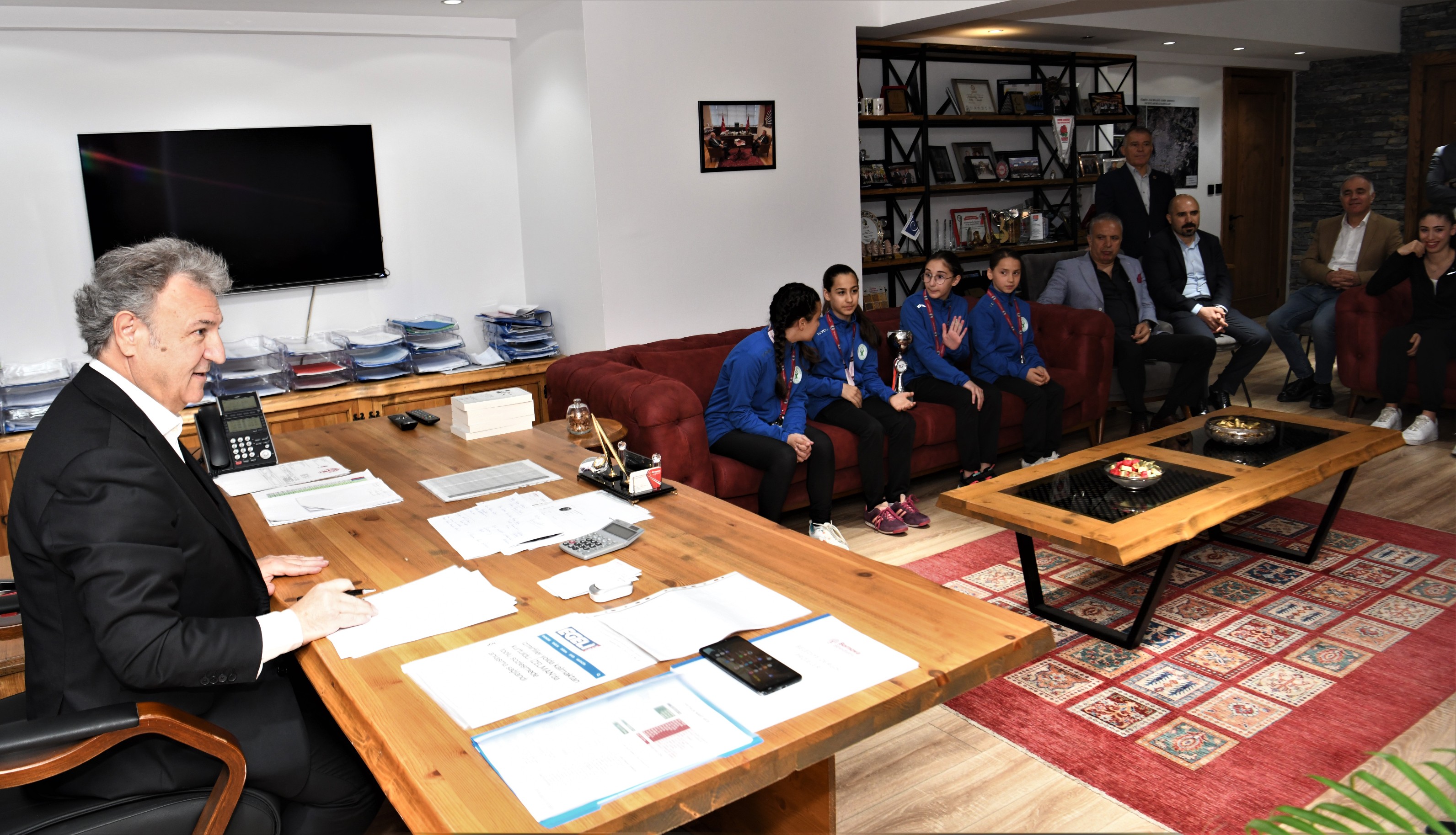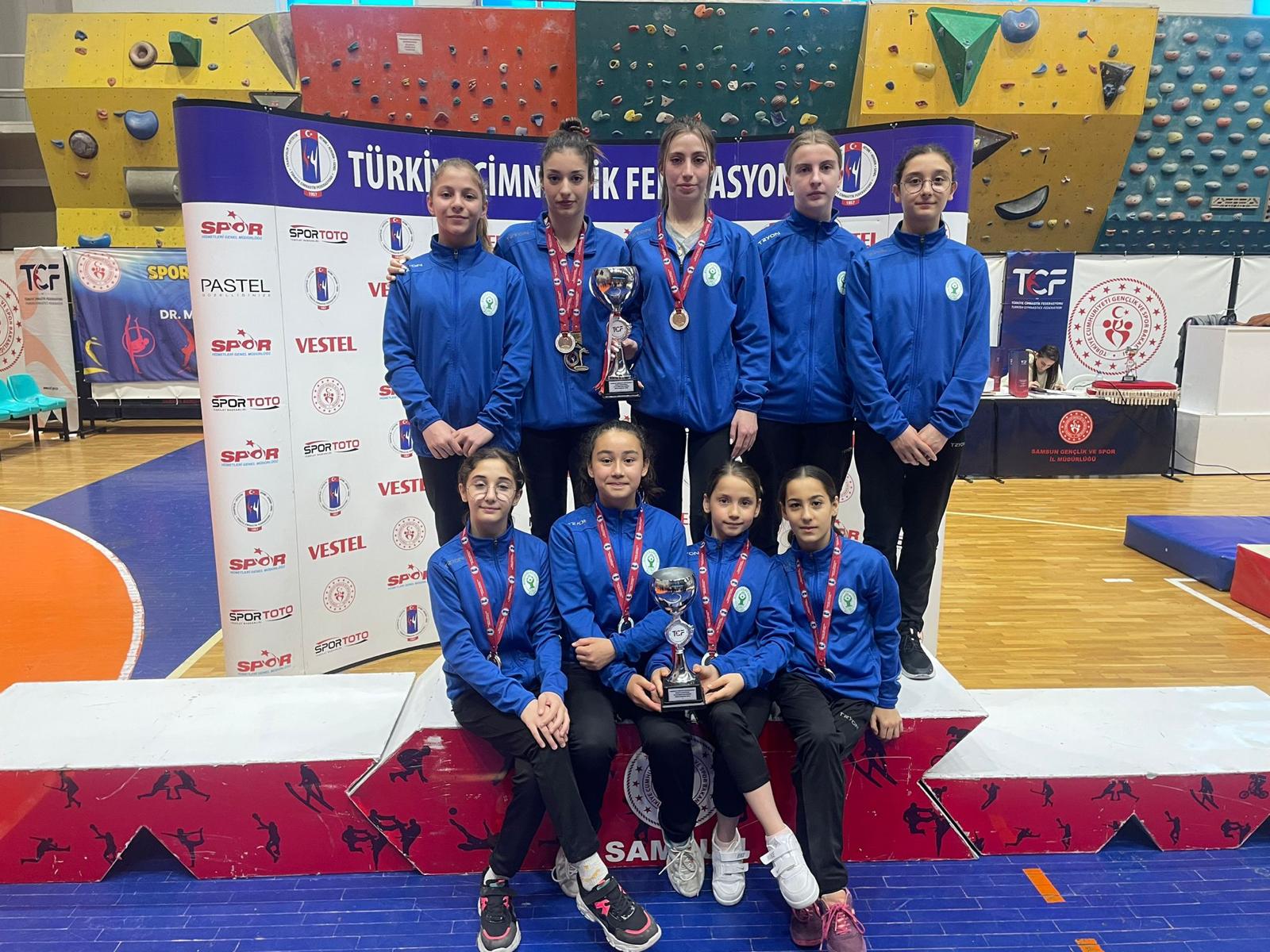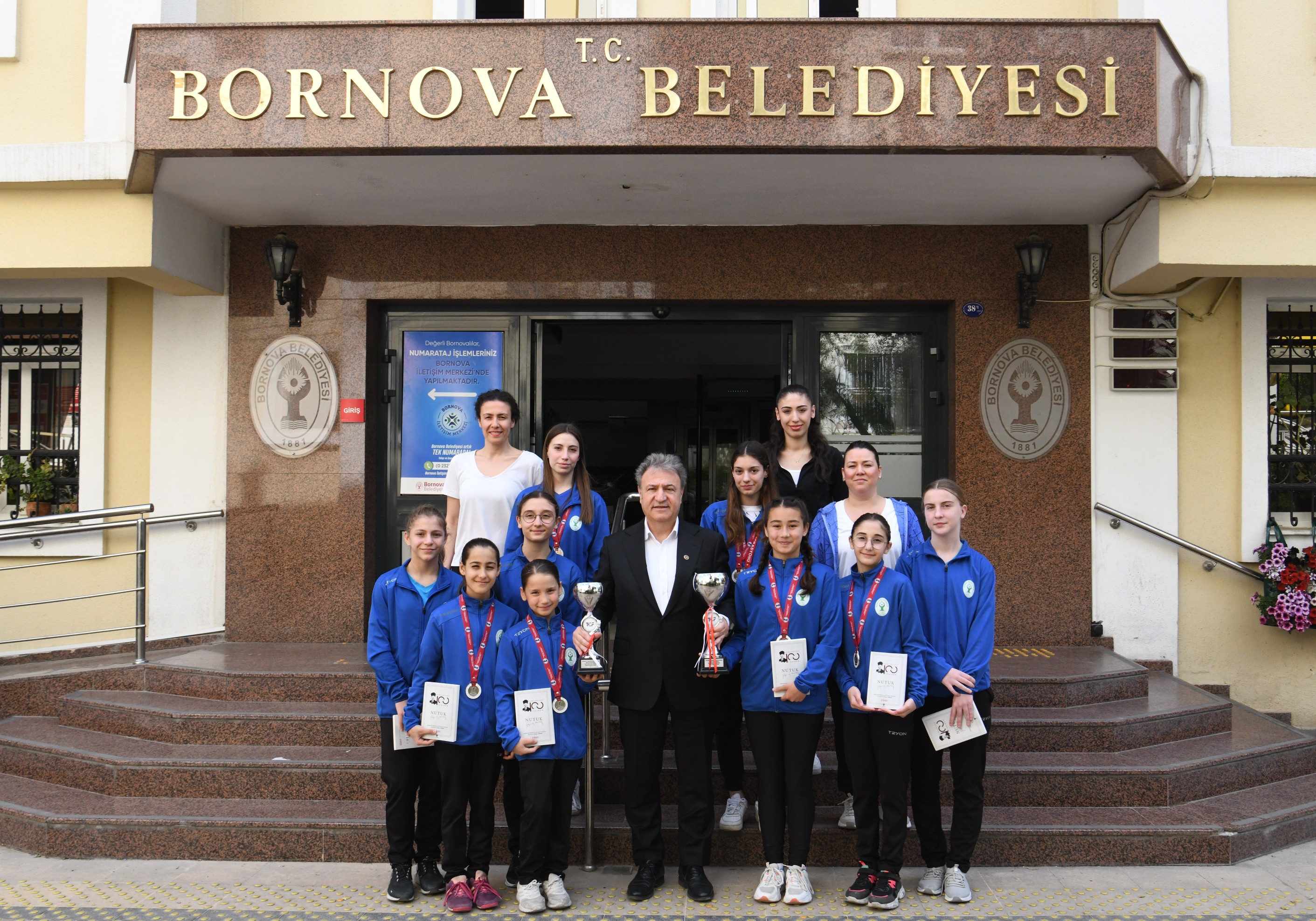 6-9 Nisan tarihleri arasında Samsun’da gerçekleştiren Trampolin Cimnastik Kulüplerarası Türkiye Şampiyonası’na Küçük Kadınlar Kategorisi’nde Kübra Eğilmez, Zeynep Masal Şenol, İlayda Yıldırım, Zehra Alırsatar, Yıldız Kadınlar Kategorisi’nde İrem Eğilmez, Selen Can, Berrak Paryaz, Büyük Kadınlarda Sıla Karakuş ve Yaren Cesur olmak üzere 9 sporcu ile katılan Bornova Belediyesporlu cimnastikçiler büyük bir başarıya daha imza attı. Antrenörlüğünü Gülşah Başol, Aysun Yıldırım ve Seda Şahin’in yaptığı Yeşil-Beyazlılar, takım halinde Büyük Kadınlarda Türkiye birincisi, Küçük Kadınlarda Türkiye ikincisi, Yıldız Kadınlarda ise Türkiye dördüncüsü oldu. Türk cimnastiğine Dünya Kupası'nda ilk madalyayı kazandıran Sıla Karakuş da bireysel dalda birincilik kürsüsüne çıktı. Yine bireyselde Kübra Eğilmez dördüncü, Yaren Cesur beşinci sırada yer aldı.Genç Basketçilerden de ziyaretAyrıca 6-12 Mayıs tarihleri arasında yapılacak olan Türkiye Şampiyonası’na katılacak olan İzmir U18 Ligi 3.’sü Bornova Belediyespor Erkek Basketbol takımı da Başkan İduğ’u ziyaret ederek verdiği desteklere teşekkür etti.Başkan İduğ: “Başarılar bizi de motive ediyor”Bornova Belediye Başkanı Dr. Mustafa İduğ, tüm sporcuları ve antrenörleri kutladı. Öncelikle çocuklar, gençler ve kadınlar olmak üzere daha fazla Bornovalı’ya, daha iyi şartlarda spor yapma imkanı sunmayı amaçladıklarını ifade eden İduğ, “Bu hedefle yeni spor tesisleri açıyor ve mevcut olanları yeniliyoruz. Elde edilen böylesi başarılar ise bize ayrı bir mutluluk veriyor. Çünkü yaptığımız yatırım ve çalışmaların karşılığını aldığımızı görüyoruz. Bu bizi Bornova’ya hizmet yolunda daha da motive ediyor” diye konuştu.