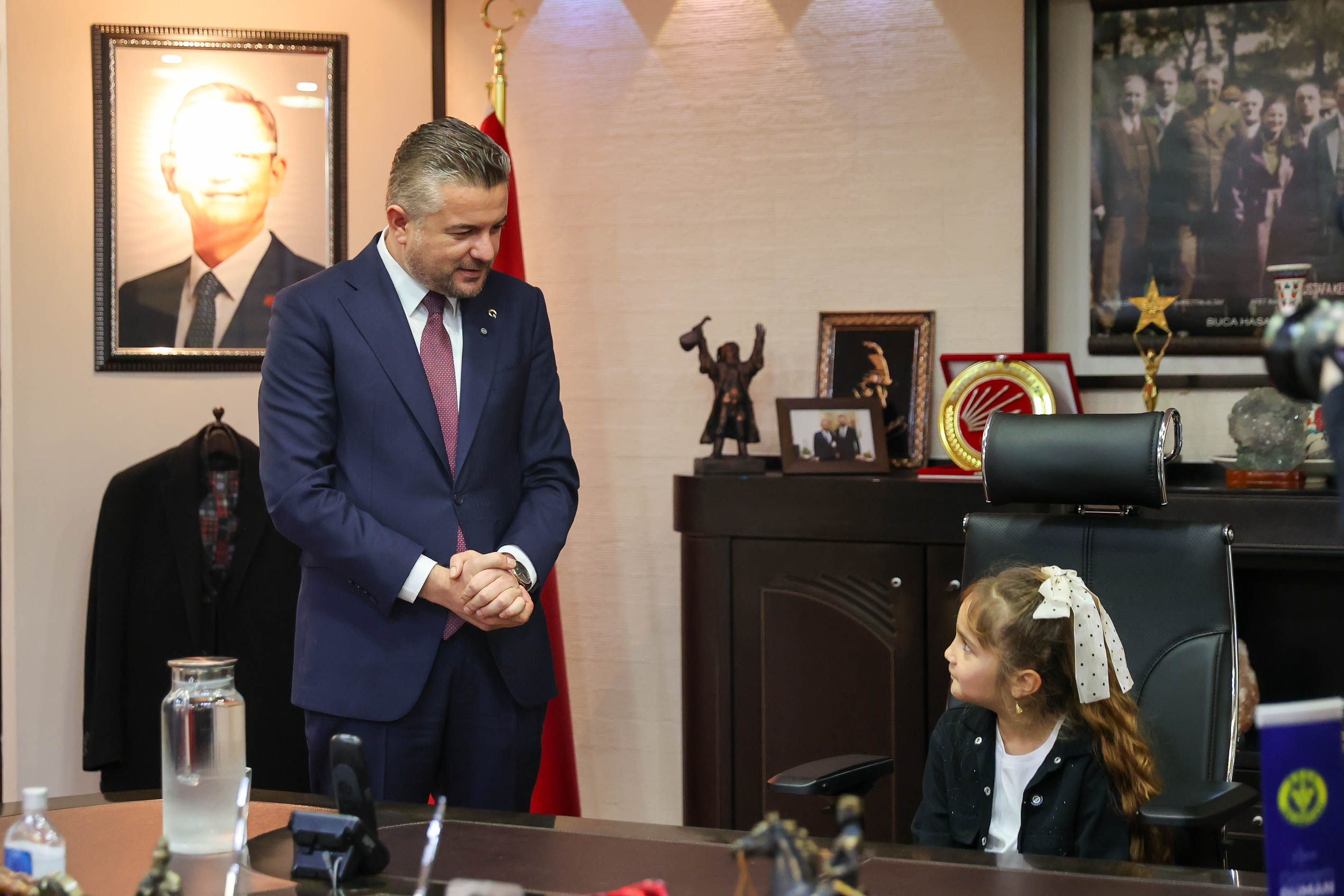 Vali Rahmi Bey İlkokulu öğrencisi Adasu Yaşasın, 23 Nisan Ulusal Egemenlik ve Çocuk Bayramı kutlamaları kapsamında Buca Belediye Başkanlığı koltuğuna oturdu. Devir teslim töreni sırasında Başkan Görkem Duman ile sohbet eden Adasu’nun ileride mimar olmak istediğini söylemesi üzerine Duman, duyduğu memnuniyeti dile getirdi.