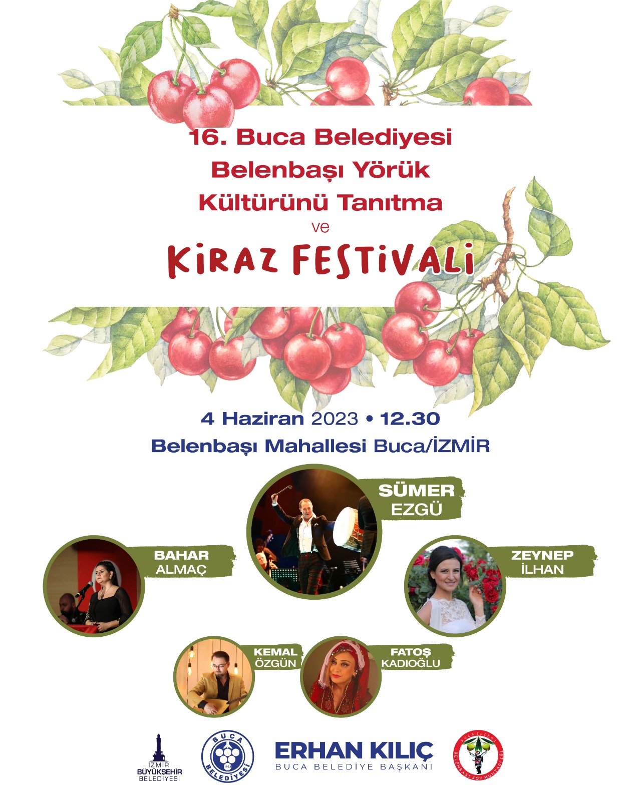 İzmir Büyükşehir Belediyesi’nin katkılarıyla buca belediyesi ve Belenbaşı Muhtarlığı’nın ev sahipliğinde gerçekleştirilecek Buca Belediyesi Belenbaşı Yörük Kültürünü Tanıtma ve Kiraz Festivali, bu yıl 16’ıncı kez düzenlenecek. Yörük kültürüne ait önemli değerlerin can bulacağı festival, geçtiğimiz kasım ayında kalp krizi sonucu yaşamını yitiren Belenbaşı Muhtarı ve Ege Bölgesi İzmir Yörük Türkmen Federasyonu Başkanı İsmet İlhan anısına yapılacak.