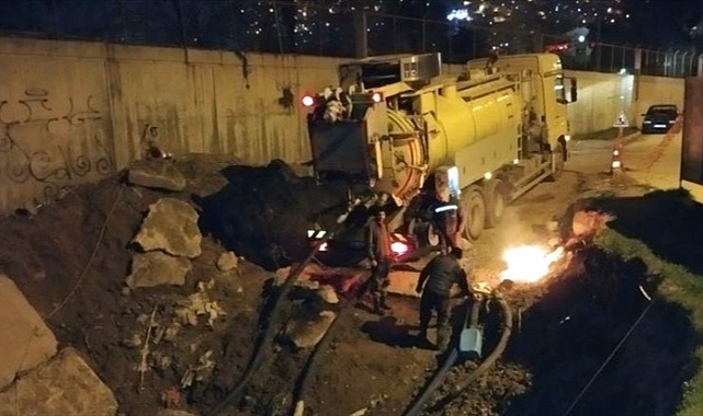 24 saat kesintisiz devam eden çalışmalarda önce borunun temizlenecek kısmındaki su akışı giyotin vanalarla kesiliyor. Daha sonra, hattaki su, açılan müdahale havuzları yoluyla diğer kolektör hattına yönlendiriliyor. Vana odaları ve pencerelerin imalatı tamamlandıktan sonra ana hatta inen İZSU ekipleri biriken kum, çakıl ve teressübatı hattan çıkarıyor. Bu çalışma sayesinde, hem atıklardan kaynaklanan kokunun hem de yaşanabilecek tıkanmaların önüne geçiliyor. Hat içerisinde biriken kum ve çakılın Çiğli Atıksu Arıtma Tesisi’ne ulaşmasını da engelleyen çalışmalar, tesisin verimli bir şekilde işlemesine katkı sağlıyor.