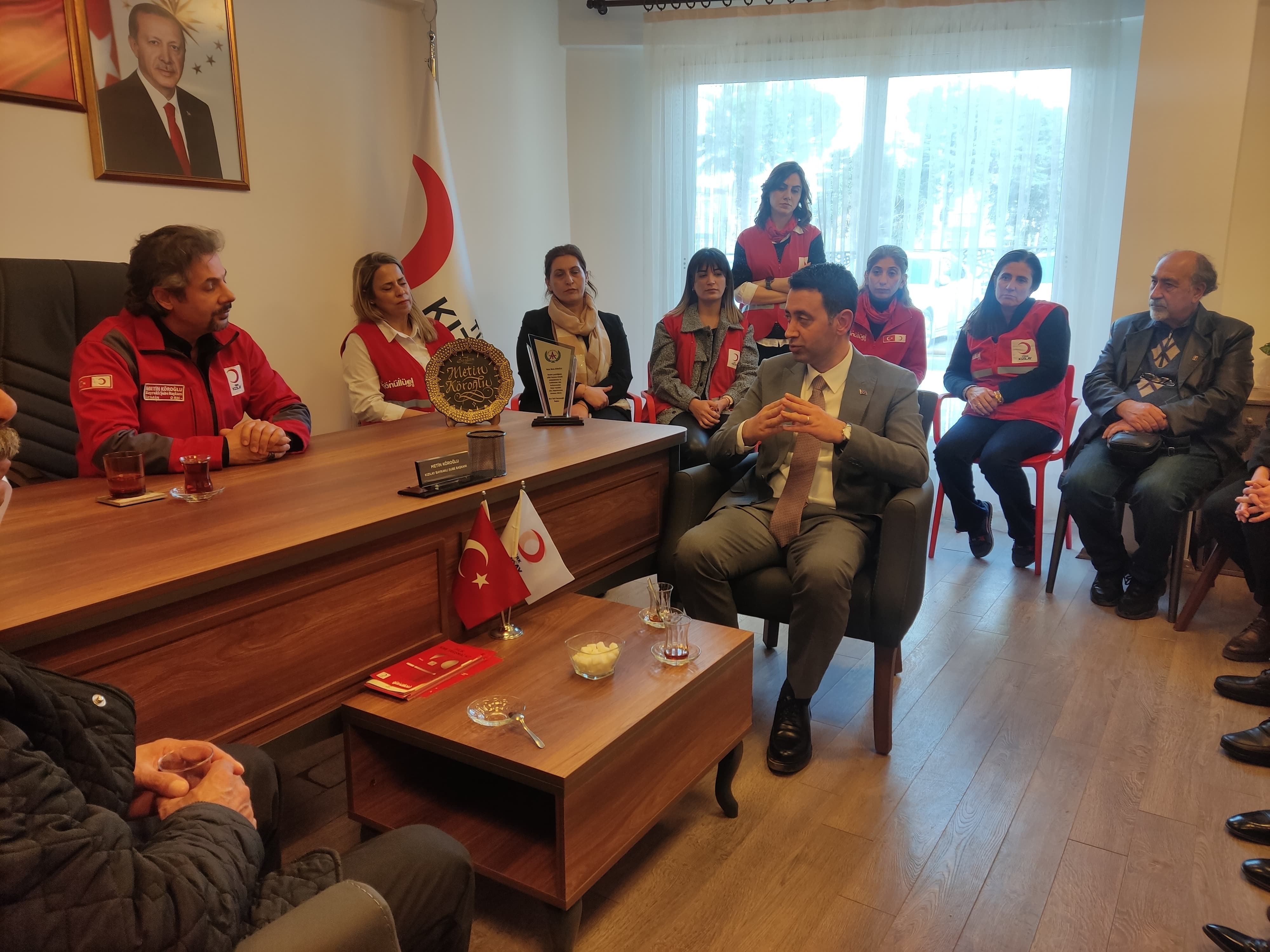 Emine KULAK/ AGORA MEDYA - Cumhuriyet Halk Partisi (CHP) Bayraklı Belediye Başkan Adayı İrfan Önal, seçim çalışmaları kapsamında ziyaretlerini sürdürüyor.Türk Kızılay Bayraklı Şubesini ziyaret eden Önal, ardından Afyonkarahisarlılar Kültür Eğitim ve Dayanışma Derneği üyeleri ile bir araya geldi.ÖNAL: DAYANIŞMA VE BİLİNÇLE VATANDAŞIMIZIN YANINDA OLACAĞIZTürk Kızılay Bayraklı Şube ziyaretinde konuşan Önal, “Kızılay bizler için ayrı bir kurum. Toplumun bütün kesimlerine hele ki zor günlerimizde yanımızda olan bir kurum. Cumhuriyet öncesinden başlayıp, Cumhuriyet tarihimiz boyunca da zorluğun olduğu her yerde Kızılay imkanda bulundu. Dayanışma ve bilinçle vatandaşımızın yanında olacağız. Dar günlerde beraber dayanışacağız” ifadelerini kullandı.KÖROĞLU: TAMAMEN TARAFSIZIZTürk Kızılay Bayraklı Şube Başkanı Metin Köroğlu ise, “Bizler inşallah göreve gelmeniz itibariyle Kızılay olarak sizlerle milletimize hizmet etme noktasında hiçbir engel bizden yana söz konusu olmaz. Biz işi kolaylaştırma ve çözüm noktasında hep olacağız. Bu anlamda Kızılay’ımızın burada kuruluşunun yeni olması sebebiyle eksiklerimizin olduğunu bilmenizi isterim. Bunları sizinle paylaşacağız. Beraber sırt sırta vereceğiz. Kurumlarımızı yan yana getireceğiz. Bayraklı şubenin kuruluşu noktasında yetkilendirildiğimden itibaren, hiçbir şekilde burası bir siyaset noktasında, arka bahçe ya da ön bahçe noktası olarak değerlendirmeyeceğim. Burada hiç kimsenin dilini, dinini, inancını gözetmeyeceğim ve her partiden de birilerinin yönetimde olmasını arzu ettim. Göreve gelmeden de bütün partileri aradım. Burada yönetimde olmaları için birilerini yönlendirmelerini rica ettim. Bugün bizler beraber yönetmeye kalkışmazsak, bir kesim gelir ve sadece bir kesim için hizmet götürürüz. Bu da bizim eksikliğimiz olur. Bundan dolayı biz tamamen bu konuda tarafsızız. Bu kurum, bu coğrafyada yaşayan herkesin kurumudur. Herkes eşit bir şekilde faydalanacaktır. Biz hiç kimseyi ayırt etmiyoruz” diye konuştu.