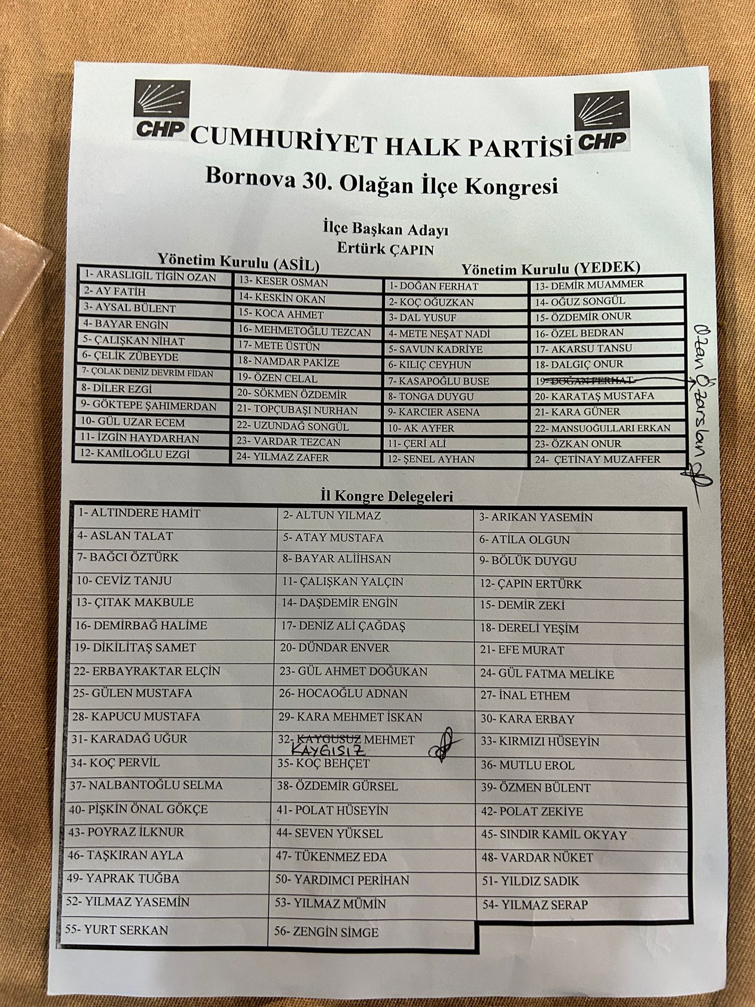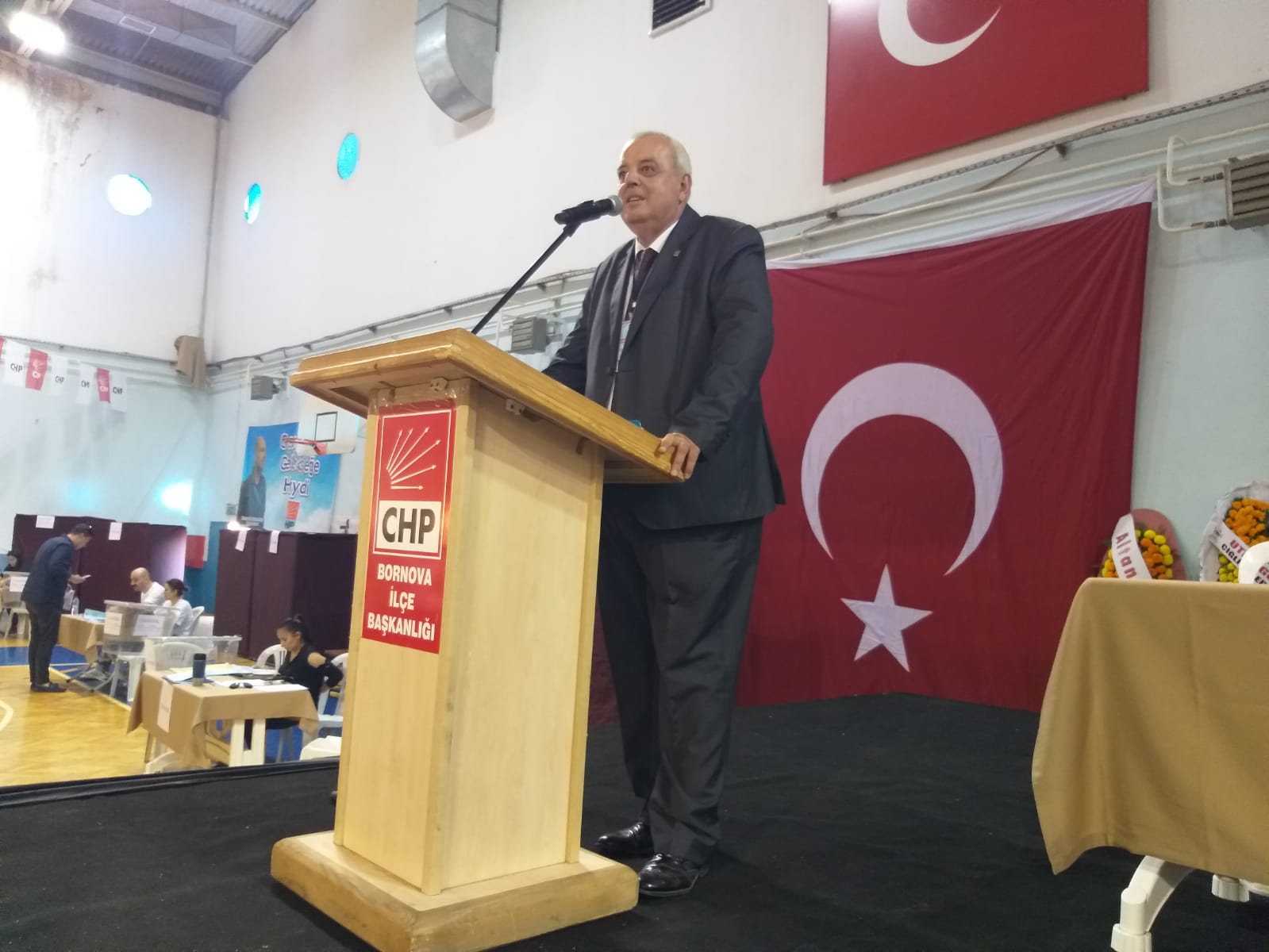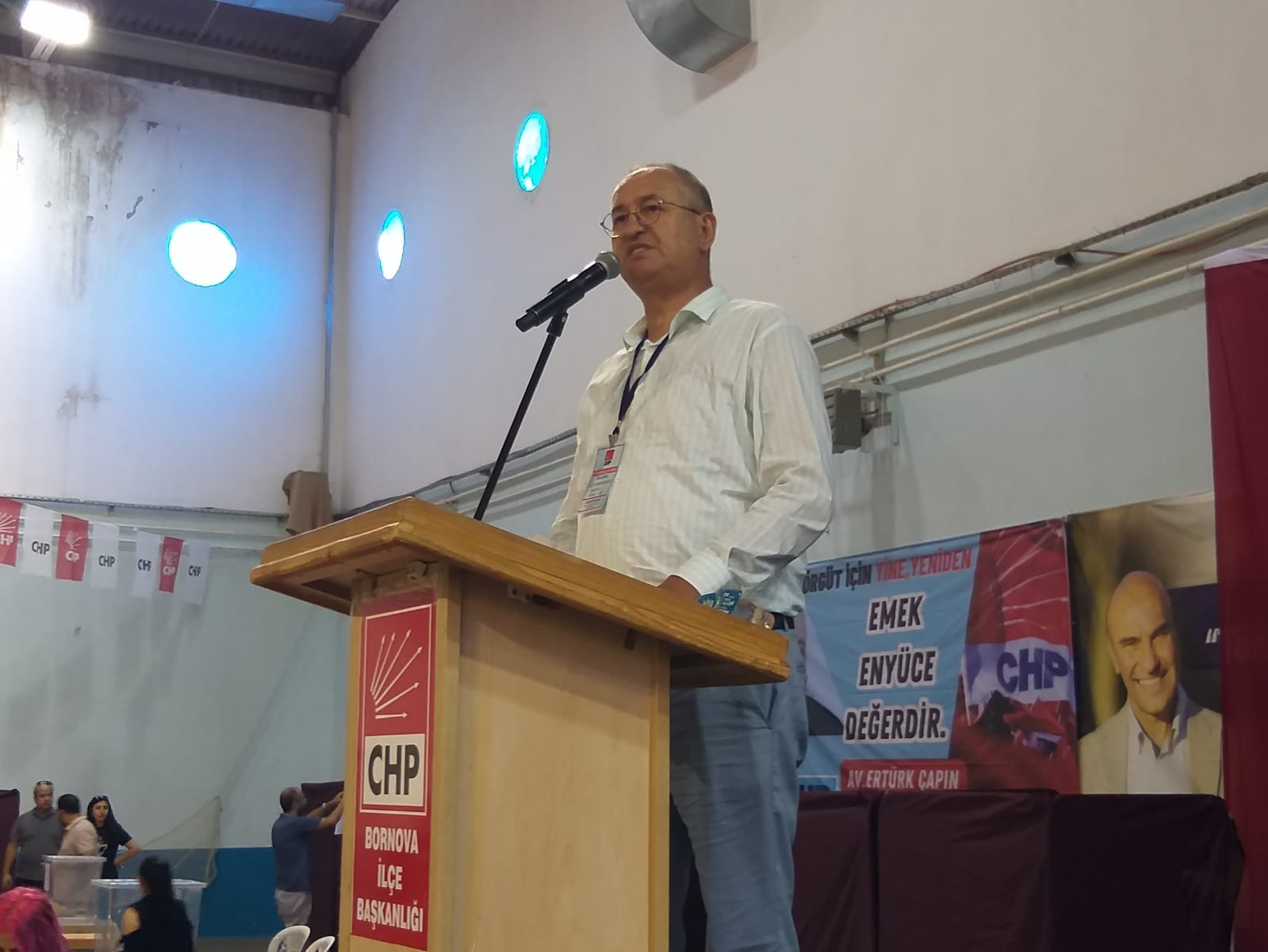 Yerel seçimlerde 30 ilçeyi ve Büyükşehir Belediyesi’nin alacaklarını söyleyen Aslanoğlu, “AK Parti ve yandaşlarından aç tavuk kendini darı ambarında görür gibi 20 belediye alacağız falan... Sandıklar kurulalı 2 ay olmadı. Kurulan tüm sandıklarda onları ezdik. Bu yerel seçimlerde Bornova ilçesini bir kez daha kazanacağız. Bu ilçede ne ilk zaferimiz olacak ne son zaferimiz. Biz 30 ilçenin 30'unda da, Büyükşehir'de de CHP'nin bayrağını bir kez daha dalgalandıracağız. Sadece il ve ilçe başkanlarını seçtiğimiz kongreler değil yerel seçim çalışmalarını kol kola başlatacağımız ilk gün olacak inşallah” diye konuştu.ADAYLARDAN MESAJLARÇAPIN: SİZİN SATACAK MADALYANIZ BİLE YOK!Adaylardan Mevcut İlçe Başkanı Ertürk Çapın, Bornova Belediye Başkanı Mustafa İduğ ile siyaseten yollarının farklı olduğunu ifade ederek, “Bir süreçten geçtik. Hepimiz sonuna kadar inanmıştık. Bende 15 Mayıs sabahı iktidar partisinin Bornova ilçe başkanı olacağıma emindim. Olmadı arkadaşlar. Örgütümüz çalıştı. CHP örgütü çalıştı. Bornova örgütü binlerce kişiyle sandığa sahip çıktı. Hepinize tekrardan teşekkür ediyorum. Bir milletvekili seçiminde aldığımız oya bakın, bir de sayın genel başkanımızın aldığı oya bakan. Bu partinin terbiyesini almış hiç kimse ‘bir oy Kemal’e, bir oy TİP’e’ diyerek sabote edemez. TİP’e saygımız sonsuz ama bu partiye üyeyseniz ihanet edemezsiniz. Bana sosyal medyadan saldıran bazı arkadaşlar var. Bunu ben söylüyorsam beni de atsınlar partiden. Ama ben burada doğdum, onlar nereden geldiler ben merak ediyorum. Kimsenin CHP’ye ihanete etmeye hakkı yok. Sosyal demokrat partinin ekmeğini yiyeceksin sonra sosyal medyada karavana serbest. Ben bu partinin ilçe başkanıysam gereğini yaparım. Benim kimseyle kişisel problemim yok. CHP’nin ilçe başkanı makamında oturuyorsunuz bu makamın gerekliklerini yapmalısınız. Bir arkadaşımız kalktı il başkanımızla ilgili olmadık sözler yazdı. Ne yapacak bu ilçe başkanı? Ben partiyi hiç terk etmedim, partime küsmedim. Delege arkadaşlar burada. Ne kadar demokratik rotamda kongre yapıyoruz. Gerek var mı ya? Partimizin kültüründen böyle bir terbiyesizlik yok. Sayın başkanımız benim çocukluk arkadaşım ama siyaseten bizim yollarımız ayrı. Benim CHP’deki düşüncelerim kendisiyle farklı. Ben bunu inkar etmiyorum. Ben onun ailesini, kendisine incitecek bir şey yapmam. Yapana da gereğini yaparım. Ama bakıyorsunuz biri sosyal medyada arkadaşım kardeşim demiş, benim hakkımda ise ‘çapsız çapın’ diyor. Bizim kültürümüzde ve terbiyemizde böyle bir şey yoktur. Hiçbir ilçe başkan mevcut belediye başkanı ile kötü olmak istemez. Uyumlu götürmek zorundasınız ama ideoloji olarak uyumsuzluk yaşadık. Başkanımız kasti yapmamıştır ama gitti Yeni Asır gazetesinde arkasında ‘Kılıçdaroğlu kaçtı’ yazısı var. Mecliste AKP’li kişileri övdünüz, ‘kimse devletimize laf edemez’ dediniz ama ben buna karşı çıkmak zorundayım. Benim madalyam burada arkadaşlar, ama sizin satacak madalyanız bile yok!” dedi.
