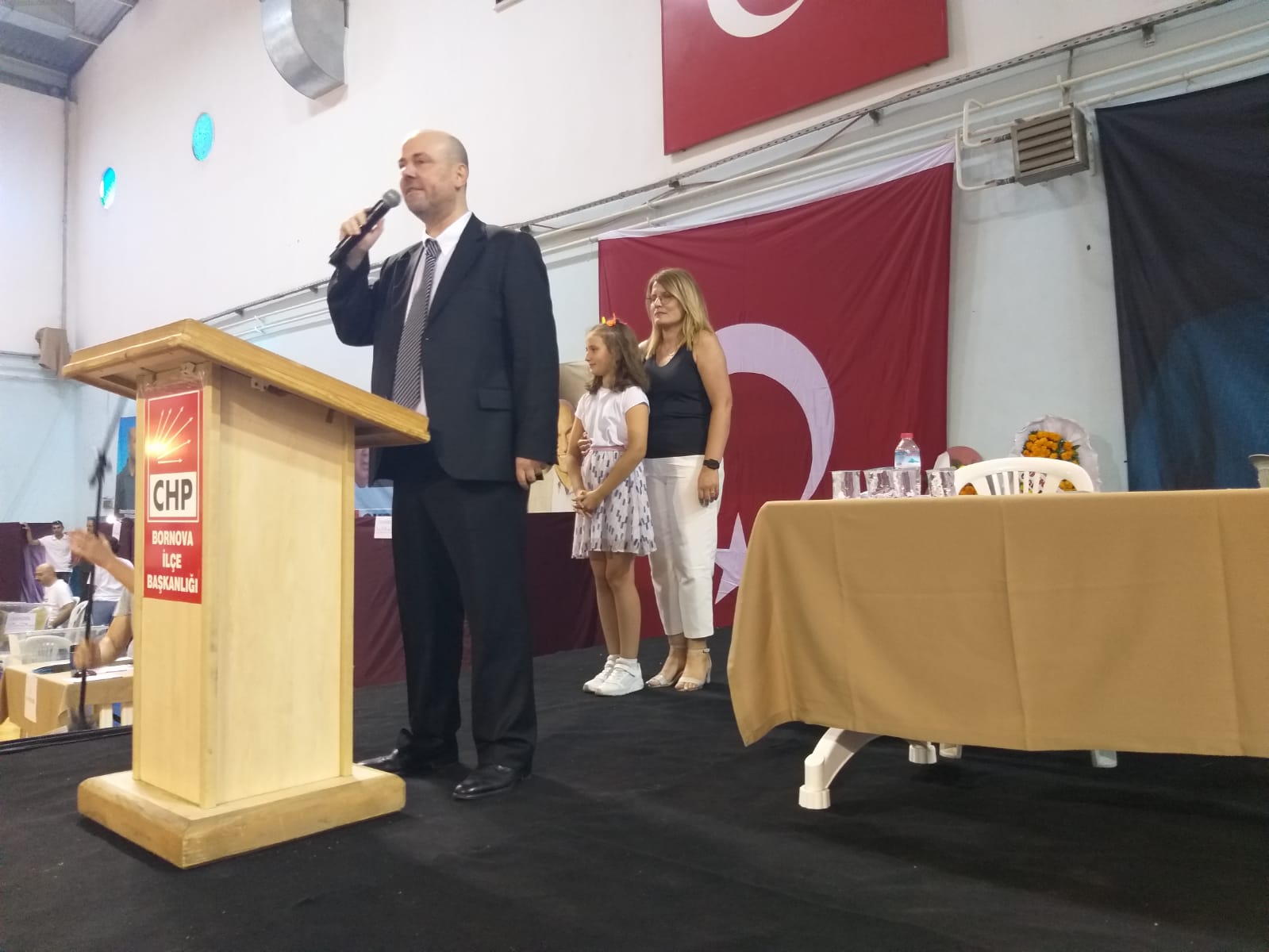 KOÇANALI: PARTİMİZ HANGİ GÖREVİ VERİRSE ONU YAPACAĞIMÇapın’ın ardından söz alan ilçe başkan adayı Volkan Koçanalı, “ Bu göreve talip olurken önce eşime sonra kızıma sordum. Çünkü dedim ki Ertürk başkanımız çok yoruldu onu 2 sene dinlendireceğiz, ben o sürede çok yorulacağım. Eşimi çocuğumu da biraz ihmal edeceğim. Onlar da haklarını helal ettiler. Seçimi kaynadıktan sonra 2 yıl boyunca bize yoldaşlık yapacak örgütümüze ihtiyacımız var. CHP Bornova örgütünden aldığım güç, partime duyduğum inanç, karşınıza ilçe başkanı olarak çıkardı beni. Sevgili babamdan kaynaklı olarak SODEP, SHP ve CHP listeleri hep evimizde yapılırdı. Aktif siyasetinden kaynaklı kızım gibi bende siyasetin içinde büyüdüm. Ondan sonra yaş ilerleyince üniversiteden önce başka oluşumlarda meşguldüm. 1999 yılında partimiz meclis dışında kaldı. O günleri bugünler çok benzetiyorum. O zaman oyumuz yüzde 9’du hayallerimiz büyüktü. Şimdi oyumuz yüzde 30’a yaklaştı hayallerimiz sadece Bornova kaldı. Müthiş bir kamplaşma ve çekişme… Bornova’da birbirimiz ile uzlaşmayı bırakıp AKP iktidarını zorbalıkları ile uğraşacağız. Ülkeyi kurtaracağız. Ertürk Başkanı ile 2009’da ilçe yöneticiliği yaptık. Partimizde karşılıksız hangi görev verildiyse onu yaptım. Bundan sonra da onu yapmaya devam edeceğimiz. Bunları inançla coşkuyla yapacağım. Bu örgütü artık gençleştirelim. Hiçbir şey için geç değil. Herkes elini vicdanına koysun Bornova ilçe örgütünün bu gidişatından memnunsanız buyurun devam edin. Değilseniz biz buradayız. Gelin bize yoldaşlık yapın! Gelin CHP Bornova örgütünü her beraber ayağa kaldıralım!” dedi.