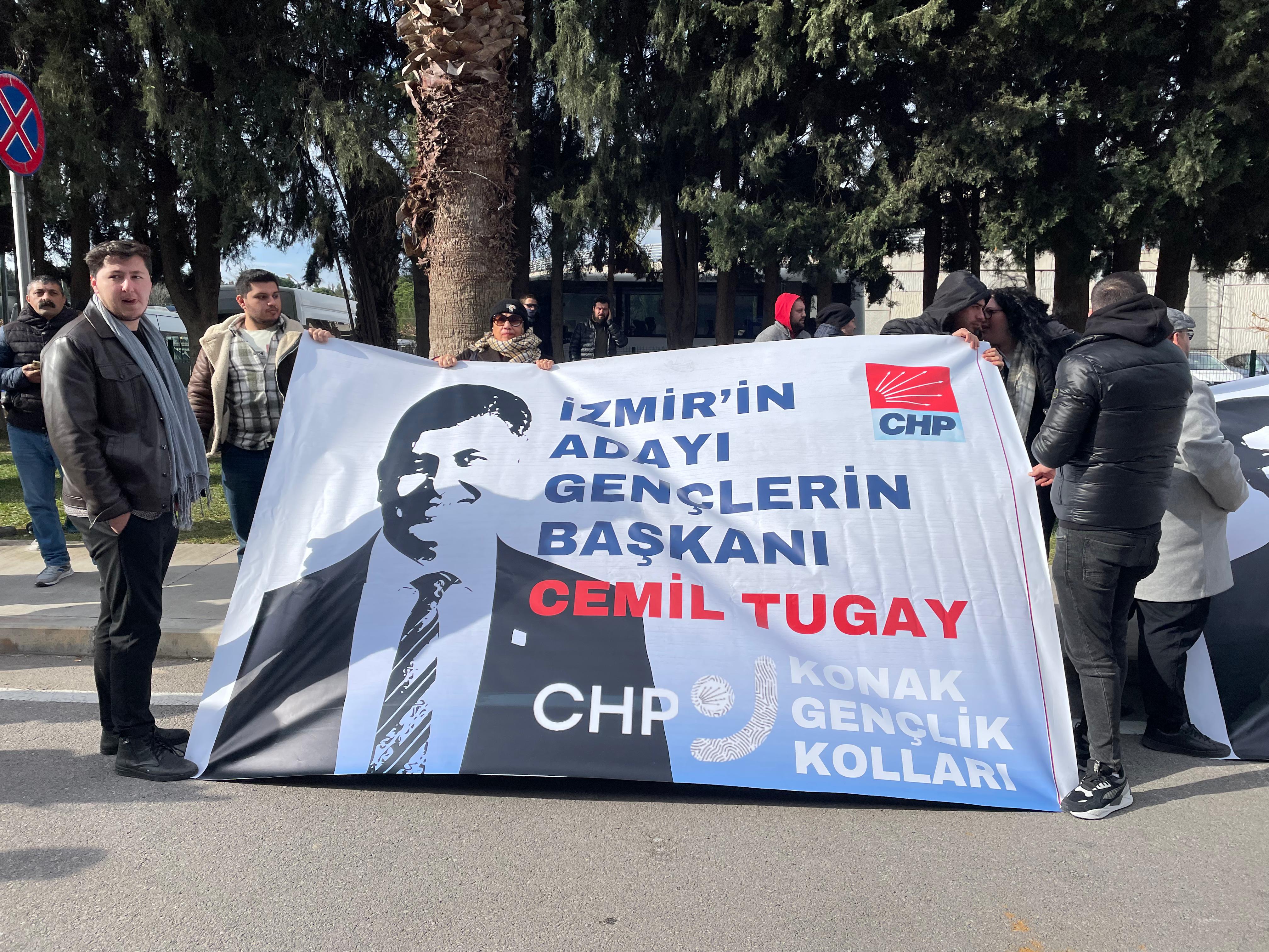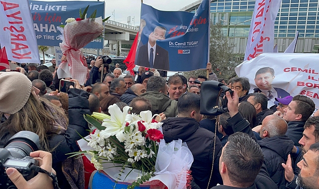 Çiğdem CANPOLAT / - Cumhuriyet Halk Partisi’nde (CHP) dün gerçekleştirilen MYK ve PM toplantılarının ardından İzmir Büyükşehir Belediye Başkan Adayı olarak mevut Karşıyaka Belediye Başkanı Cemil Tugay gösterildi.Ankara’dan İzmir’e dönen Tugay’ı Adnan Menderes Havaalanı’nda partililer coşkuyla karşıladı. Partililer ile buluşan Tugay, kendisi için hazırlanan parti otobüsü üzerinden katılımcılara seslendi.