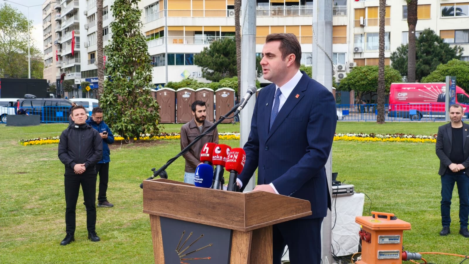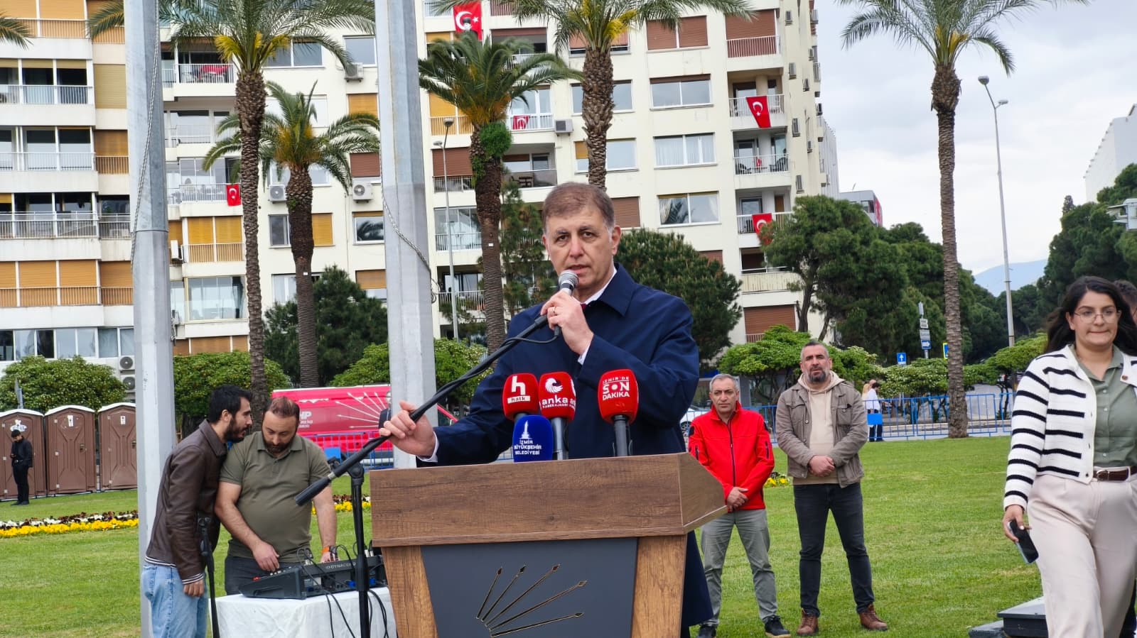 Cumhuriyet Meydanı'nda gerçekleştirilen törene ev sahibi İl Başkanı Çağatay Güç, İzmir Büyükşehir Belediye Başkanı Dr. Cemil Tugay, ilçe belediye başkanları, ilçe başkanları ile çok sayıda partili katılım sağladı.