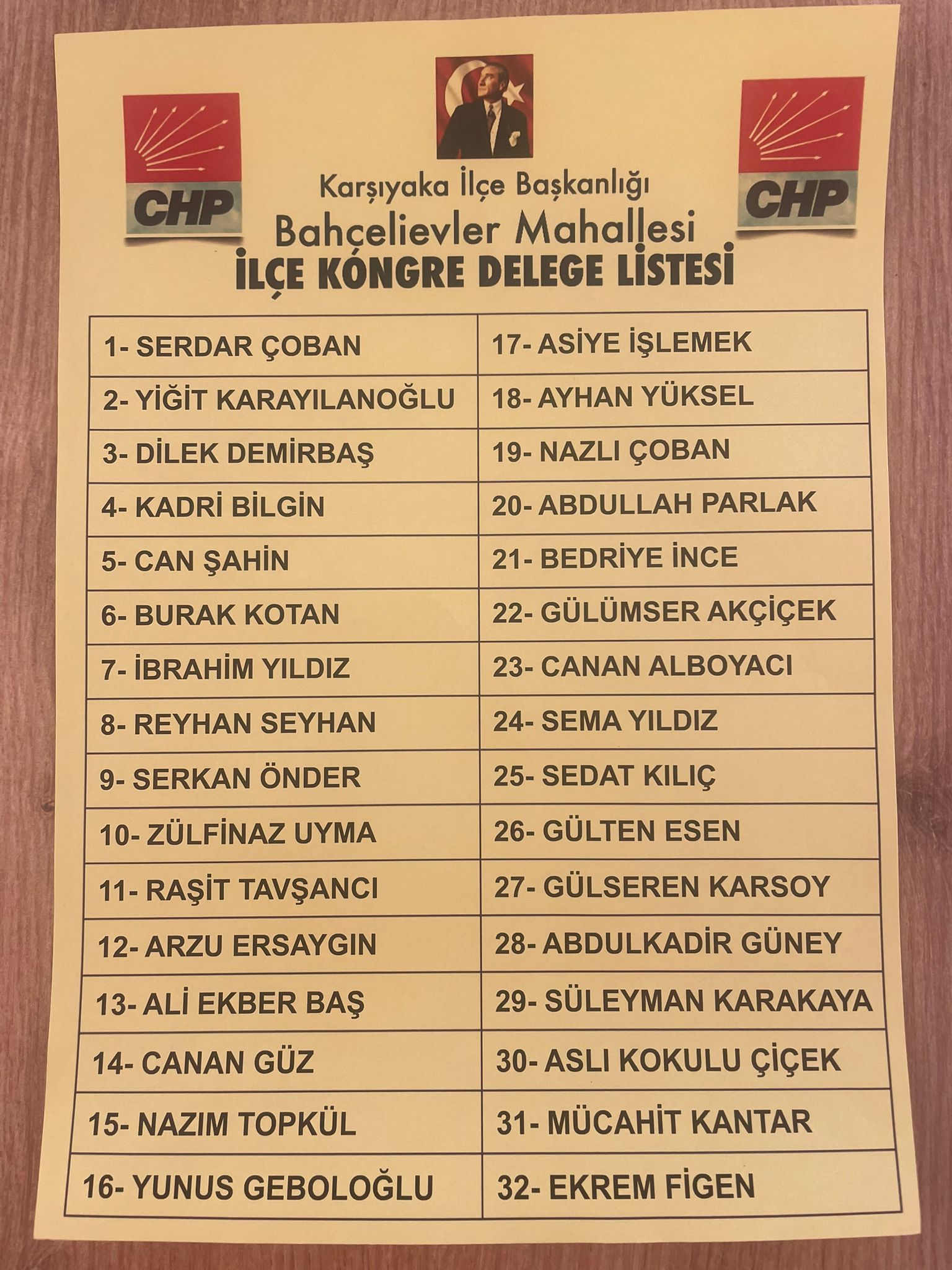 Mevcut İlçe Başkanı Rafet Yacan’ın yer aldığı mavi liste ise mağlup oldu. Mavi listenin kaybetmesi üzerine Yacan delege seçilemedi.
