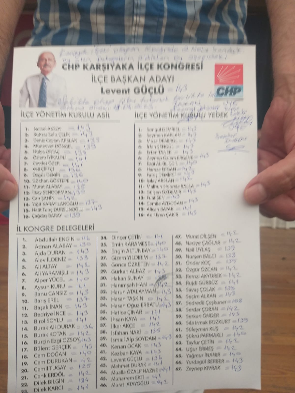 Sonuçların açıklanmasının ardından örgüte seslenen İlçe Başkanı Güçlü, “Benim için inanılmaz güzel bir gündü. Katılım ne kadar az olsa da biz burada bir bütündük, tek yürektik. Kimseyi yalnız bırakmayacağıma söz verdim” dedi.KİM, NE KADAR ÇİZİK YEDİ?152 geçerli oyun çıktığı 1 No’lu sandıktan Abdullah Engin’e 56, Cemil Tugay’a 35, Sedrettin Coşkuner’e 62 çizik çıktı.