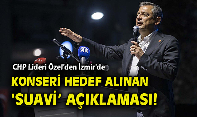 Türkiye'de konserlerin, festivallerin iptal edildiğini, vatandaşların yaşam biçimine müdahale edildiğini söyleyen Özgür Özel, 40 yıldır düşünce özgürlüğünün, örgütlenme özgürlüğünün tartışıldığını söyledi. Geçen günlerde bir konserde saldırı girişiminde bulunulan, konserleri iptal edilen Suavi'ye destek açıklaması yapan Özel, “Suavi'nin 30 Ağustos akşamı Aydın'ın Çine ilçesindeki konserini birileri hedef gösteriyor, iptali için baskı yapıyorlar. O gece İzmir Büyükşehir Belediye Başkanımız ile İzmir Enternasyonal Fuarı'nı açacağız. Ardından İzmir İl Başkanımız, bütün ilçe başkanlarımız, belediye başkanlarımız, kadın kollarımız, gençlik kollarımızla birlikte Çine'ye Suavi dinlemeye gidiyoruz. Türkiye'yi korkunun, baskının altında ezmeye çalışanlara, emekçiyi ezenlere de, sanatçıyı ezenlere de, gençleri ezenlere de şunu söylüyorum; kibriniz yetti, kimseye yukarıdan bakmayın, kimseyi karınca gibi görmeyin. O karıncayı size ezdirmeyiz. Karıncanın kardeşi var, o da CHP'dir” dedi.