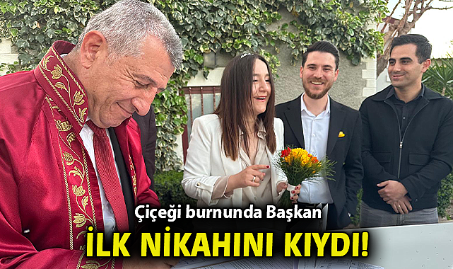 31 Mart Yerel Seçimler sonrası CHP’de mazbata alımı ve belediyeleri devralma programları devam ediyor. Mazbatasını alan Güzelbahçe Belediye Başkanı Mustafa Günay görevi devir aldığı ilk gün nikah kıydı.Göreve başlar başlamaz nikah merasimi olduğunu öğrenen Günay, genç çiftin nikahını