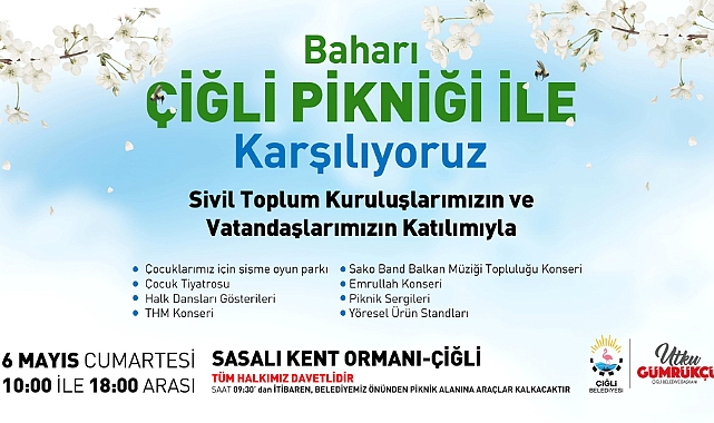 Çiğli Belediyesi’nin organize edeceği piknik, 6 Mayıs Cumartesi günü 10:00-18:00 saatleri arasında Sasalı Kent Ormanında gerçekleştirilecek. Sivil toplum kuruluşlarının ve vatandaşların katılım göstereceği piknikte çocuklar için şişme oyun parkı, çocuk tiyatrosu, halk dansları gösterileri, THM Konseri, Sako Band Balkan Müziği Topluluğu ve Emrullah konseri düzenlenecek. Etkinlikte piknik sergileri ve yöresel ürün stantları da kurulacak. Etkinliğe katılmak isteyen vatandaşlar için 6 Mayıs Cumartesi günü saat 09:30’dan itibaren piknik alanına araç kaldırılacak.Hıdırellez coşkusu yaşanacakPiknik etkinliğinde baharı, bolluğu, bereketi ve doğanın uyanışını simgeleyen Hıdırellez Bayramı çocuklara ve yetişkinlere yönelik düzenlenecek çeşitli aktiviteler ile kutlanacak. Başkan Gümrükçü: “Bu bahar başka olacak”Baharı büyük bir coşkuyla karşılayacaklarını ifade eden Çiğli Belediye Başkanı Utku Gümrükçü, “STK ve dernek temsilcileriyle yaptığımız istişareler sonucunda Çiğlili hemşehrilerimize moral olması adına böyle bir etkinlik düşündük. Çiğli üst kimliğiyle ilçemizde faaliyet gösteren tüm dernek ve sivil toplum kuruluşlarının katılım göstereceği Çiğli 1. Geleneksel Dayanışma Pikniği düzenleyeceğiz. Çiğli Belediyesi olarak masa, sandalye, jeneratör, ses sistemi, sahne, servis ve sanatçı gibi temel maliyetleri biz karşılayacağız. Çocuk ve yetişkinlere yönelik çeşitli ikramlarda bulunacağız. Bolluğun ve bereketin müjdecisi olan Hıdırellez Bayramını 7’den 70’e her yaştan vatandaşımıza hitap edecek aktiviteler ile kutlayacağız. 51 yıl önce tam bağımsız Türkiye ideali için verdikleri mücadele dolayısıyla dar ağacına gönderilen üç fidanı anacağız. Bu yıl ilkini düzenleyeceğimiz piknik etkinliğimizi gelenekselleştirerek her yıl yeniden gerçekleştireceğiz. ÇIğli’de baharı büyük bir coşkuyla karşılayacağız. Çiğli’nin bahar coşkusunu 14 Mayıs’ta ülkemizin tamamına yayacağız” diye konuştu.