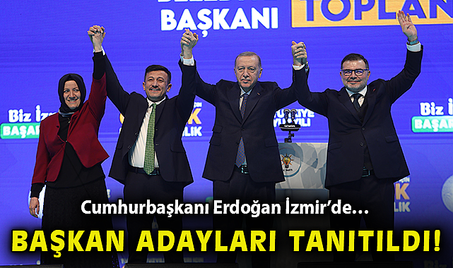 Çiğdem CANPOLAT - Emine KULAK / – 31 Mart Pazar günü gerçekleştirilecek Mahalli İdareler Seçimi için geri sayım başladı. Bu kapsamda partilerde aday belirleme çalışmaları devam ederken gözler İzmir’e döndü.Cumhurbaşkanı ve AK Parti Genel Başkanı Recep Tayyip Erdoğan’ın, İzmir Büyükşehir Belediye Başkan Adayını Hamza Dağ olarak açıklamasının ardından ilçelerde hangi isimleri aday göstereceği merak konusu olmuştu.Erdoğan, partisinin ilçe belediye başkanlarını tanıtmak için bugün İzmir’e geldi. Erdoğan aday tanıtım toplantısının ardından Bayraklı Şehir Hastanesi'nin açılışını da gerçekleştirmesi bekleniyor.