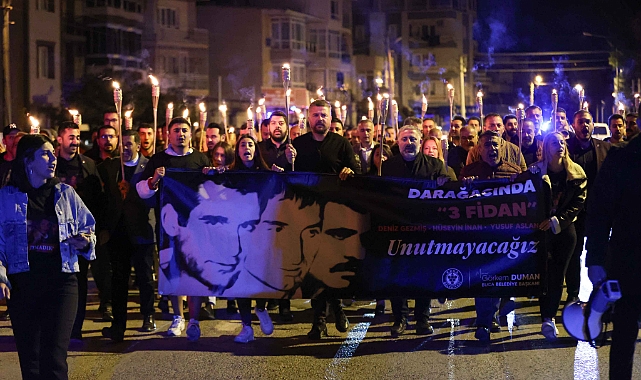 Anma töreni için Buca Tenis Kulübü önünde toplanan Bucalılar, Üç Fidan Anıtı önüne kadar ellerinde meşaleler ve pankartlar eşliğinde yürüdü. Anıtın önünde, Deniz Gezmiş ve arkadaşlarının mücadelesini anlatan belgesel gösterimi yapıldı. Daha sonra, idamların gerçekleştiği saat 05.30’da saygı duruşu gerçekleştirildi. Saygı duruşunun ardından da Üç Fidan Anıtı’na kırmızı karanfil bırakıldı.