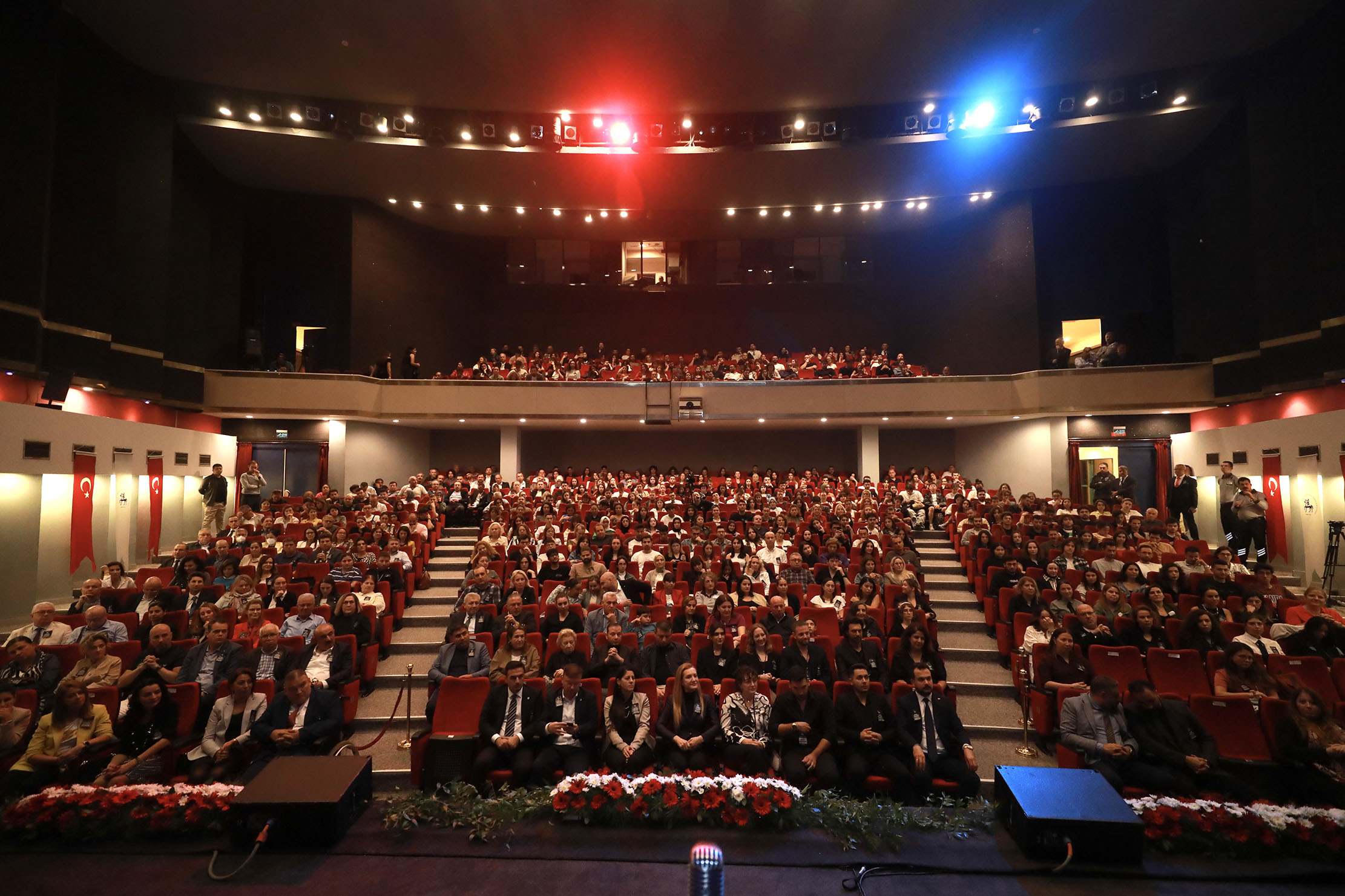 Dokuz Eylül Üniversitesi Rektörü Prof. Dr. Nükhet Hotar, Cumhuriyetin ve beraberinde getirdiği değerlerin ‘Türkiye Yüzyılı’na uygun şekilde bir asır boyunca korunduğunu belirterek, “Türkiye’nin köklü bir eğitim kurumu olarak bizler; Cumhuriyetimizin kuruluşundan bu yana geçen bir asır boyunca sağlıktan eğitime, teknolojiden savunma sanayine, dış politikadan kültür ve sanata kadar birçok alanda vatanına ve milletine hizmet eden bir anlayışla ülke değerlerimize katkı sunduk” dedi. Rektör Hotar, Üniversite mensuplarıyla bir araya gelmenin mutluluğunu yaşadıklarını belirterek, “DEÜ Öğrenci Konseyimizin düzenlemiş olduğu ve Rektörlüğümüzce desteklenen Cumhuriyetimizin 100. Yılı Cem Adrian Özel Etkinliği'nde, öğrencilerimiz, Üst Yönetimimiz, DEÜ akademik ve idari kadromuzla bir araya geldik. Filistin'de yaşanan İsrail zulmü dolayısıyla buruk bir atmosferde gerçekleştirilen etkinliğimiz öncesinde, sahnede vurguladığımız ve yakalarımızda taşıdığımız ‘Filistin’e Özgürlük’ mesajıyla, İsrail'in sebep olduğu vahşete karşı tepkimizi yeniden ortaya koyduk. İyi ve kötü, hüzün ve mutluluk gibi hayattaki her şeyin karşıtıyla birlikte var olduğunu ifade ettiğimiz Cumhuriyetimizin 100. Yılı Cem Adrian Özel Etkinliği'nde, insanlık onurunun ayaklar altına alındığı Filistin'de, yazılı olan/olmayan tüm kuralların hiçe sayıldığı, masum insanların öldürüldüğü İsrail katliamını tüm mensuplarımızla kınadık. Etkinliğimizde sahne alan Sayın Cem Adrian'a ve programımıza katılan tüm mensuplarımıza teşekkür ediyorum” dedi.