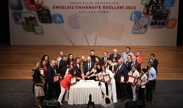 Dokuz Eylül Üniversitesi (DEÜ), Yükseköğretim Kurulu (YÖK) tarafından düzenlenen ‘2023 Engelsiz Üniversiteler Ödülleri’ törenine Türkiye çapındaki başarılarıyla damga vurmuştu. YÖK’ün ödül töreninde DEÜ, Engelsiz Program Nişanı kategorisinde 9 program nişanı alarak Türkiye birincisi; Engelsiz Üniversite Bayrak Ödülleri kategorisi kapsamında ise 20 bayrak alarak Türkiye üçüncüsü olmuştu. DEÜ Rektörlüğü tarafından elde edilen başarıların ve gururun paylaşılması için düzenlenen 'Engelsiz Üniversite Ödülleri Kutlama Töreni, DEÜ Sabancı Kültür Sarayı’nda gerçekleştirildi. Tören programına; DEÜ Rektörü Prof. Dr. Nükhet Hotar, Çalışma ve Sosyal Güvenlik Bakan Yardımcısı Prof. Dr. Lutfihak Alpkan, AK Parti İzmir Milletvekili Eyyüp Kadir İnan, MHP İzmir Milletvekili Tamer Osmanağaoğlu, Dışişleri Bakanlığı İzmir Temsilcisi Büyükelçi Naciye Gökçen Kaya, KKTC İzmir Başkonsolosu Ayşen Volkan İnanıroğlu, KKTC Eğitim Kültür Ateşesi Şebnem Pekdoğan, kurum il müdürleri, sivil toplum örgütü temsilcileri, DEÜ akademik ve idari kadrosu, öğrenciler, engelli bireyler ile misafirler katıldılar.