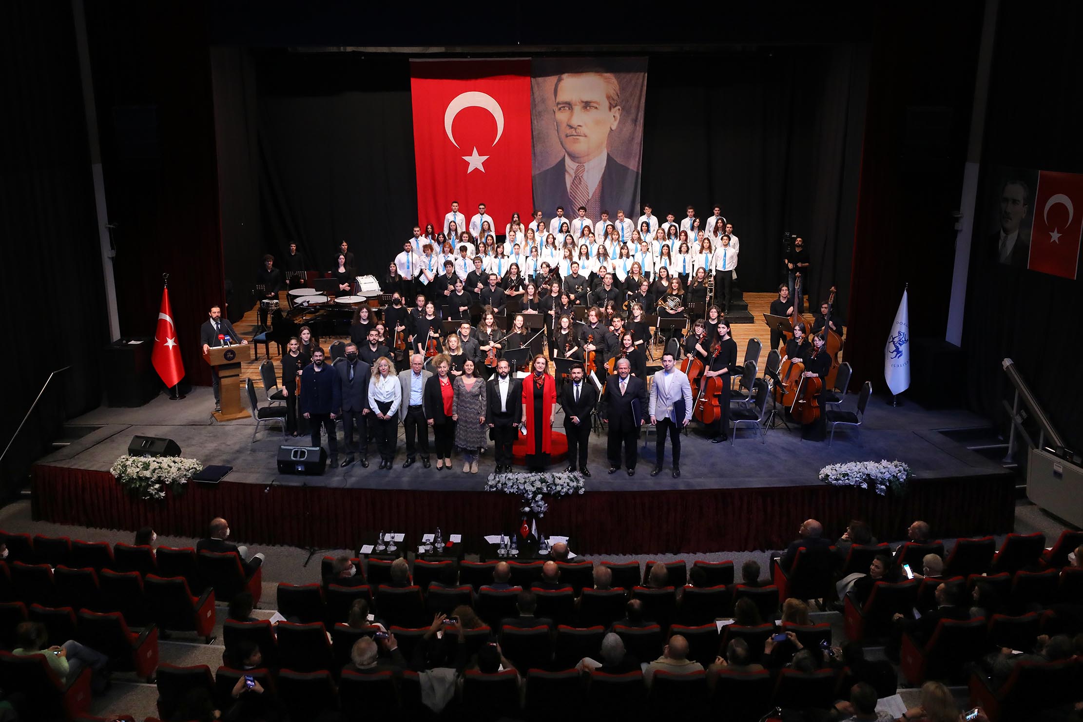 “DESTEĞİMİZ SÜRECEK”Yarışmanın Türkiye’nin müzik repertuarına da önemli katkılar sağladığını belirten Rektör Hotar, “Ülkemizi ve kentimizi ilgilendiren konularda sorumluluk üstlenen Araştırma Üniversitemiz, aziz milletimizin değerlerini koruyup kollamaya özen göstermektedir. DEÜ olarak daha öncesinde ülkemizin ilk Bayrakbilim ve Türk Bayrakları Müzesi’ni kurmuş, çocuk ve gençlerimizde tarih bilincini artırmayı; bayrak ve vatan sevgilerini pekiştirmeyi hedeflemiştik. Bu yarışmamız da, milletimize olan bağlılığımızın bir sonucuydu. Bir kez daha yarışmamıza katılan sanatçılarımıza; eserleri seslendiren Devlet Konservatuvarımız Senfoni Orkestrası ve Korusuna; büyük ailemizin fertlerine ve sanatseverlere şahsım ve kurumum adına teşekkür ediyorum. DEÜ olarak, bundan sonra da sanatı ve sanatçıyı destekleyecek; milletimizin kutlu tarihine ve kültürel mirasına sahip çıkmaya devam edeceğiz” ifadesinde bulundu. ÜÇ ESER FİNALE KALMIŞTIYarışmaya katılan eserler arasından Güray Kapucu’nun “İzmir'in Kurtuluşu”, İltan Bilge’nin “Kutlu Gün Marşı” ve Mustafa Polat’ın “Söz Yetmez 9 Eylül Marşı”, ön seçici kurul tarafından finale bırakılmıştı. Ardından yarışma final jürisi tarafından yapılan değerlendirme sonucunda, DEÜ Devlet Konservatuvarı Bestecilik ve Orkestra Şefliği Anasanat Dalı birinci sınıf öğrencisi İltan Bilge’nin “Kutlu Gün Marşı” isimli eseri, birinciliğe layık görülmüştü. Yarışmaya katılan her eserin kıymetli olduğu vurgusu yapan Rektör Hotar, “Her eserde emek, sevgi ve cesaret bulunmaktadır. Yarışmada dereceye girerek ödül almaya hak kazanan eser sahiplerini ve değerli sanatçılarımızı bir kez daha kutluyorum” şeklinde konuştu.