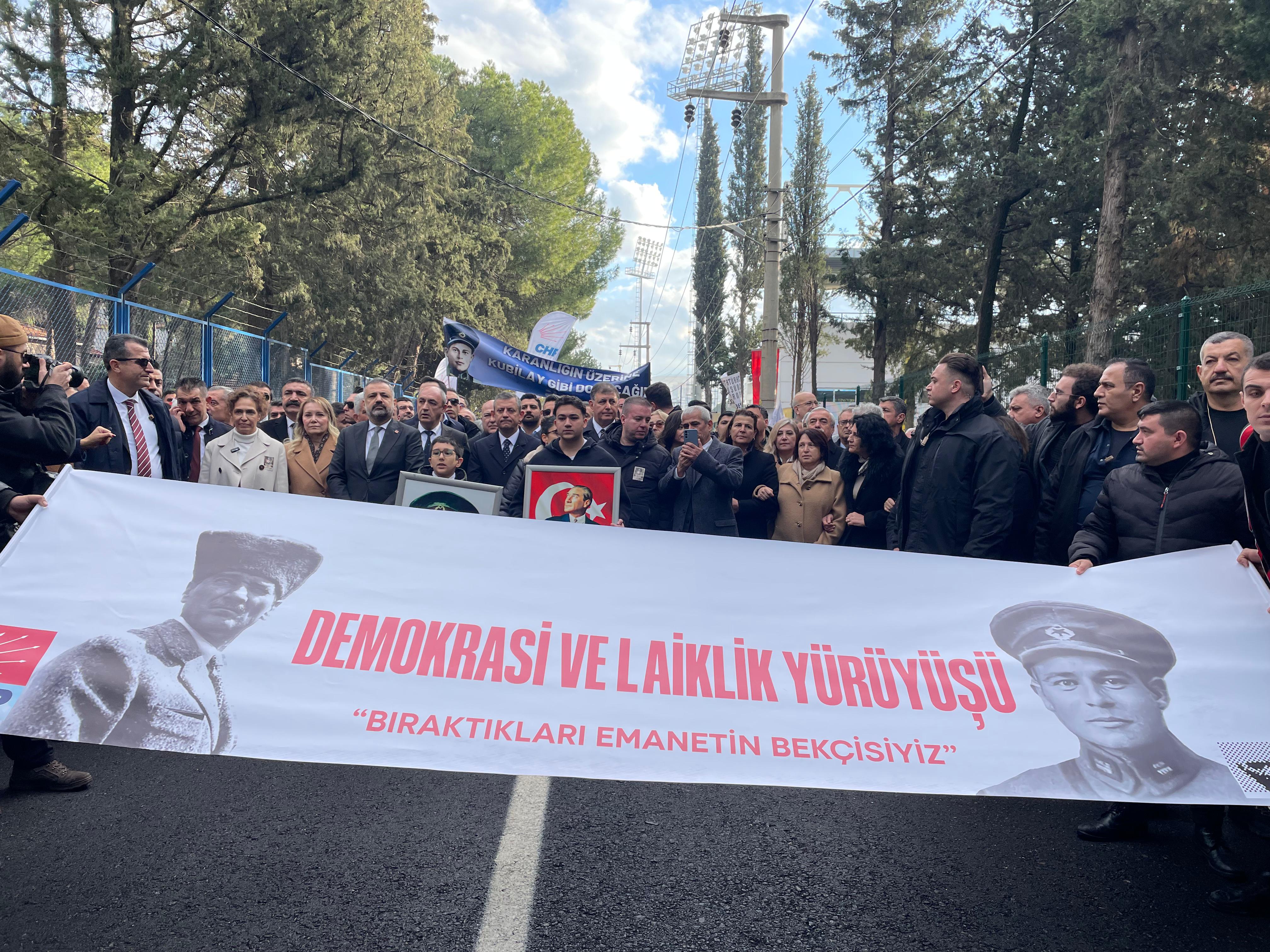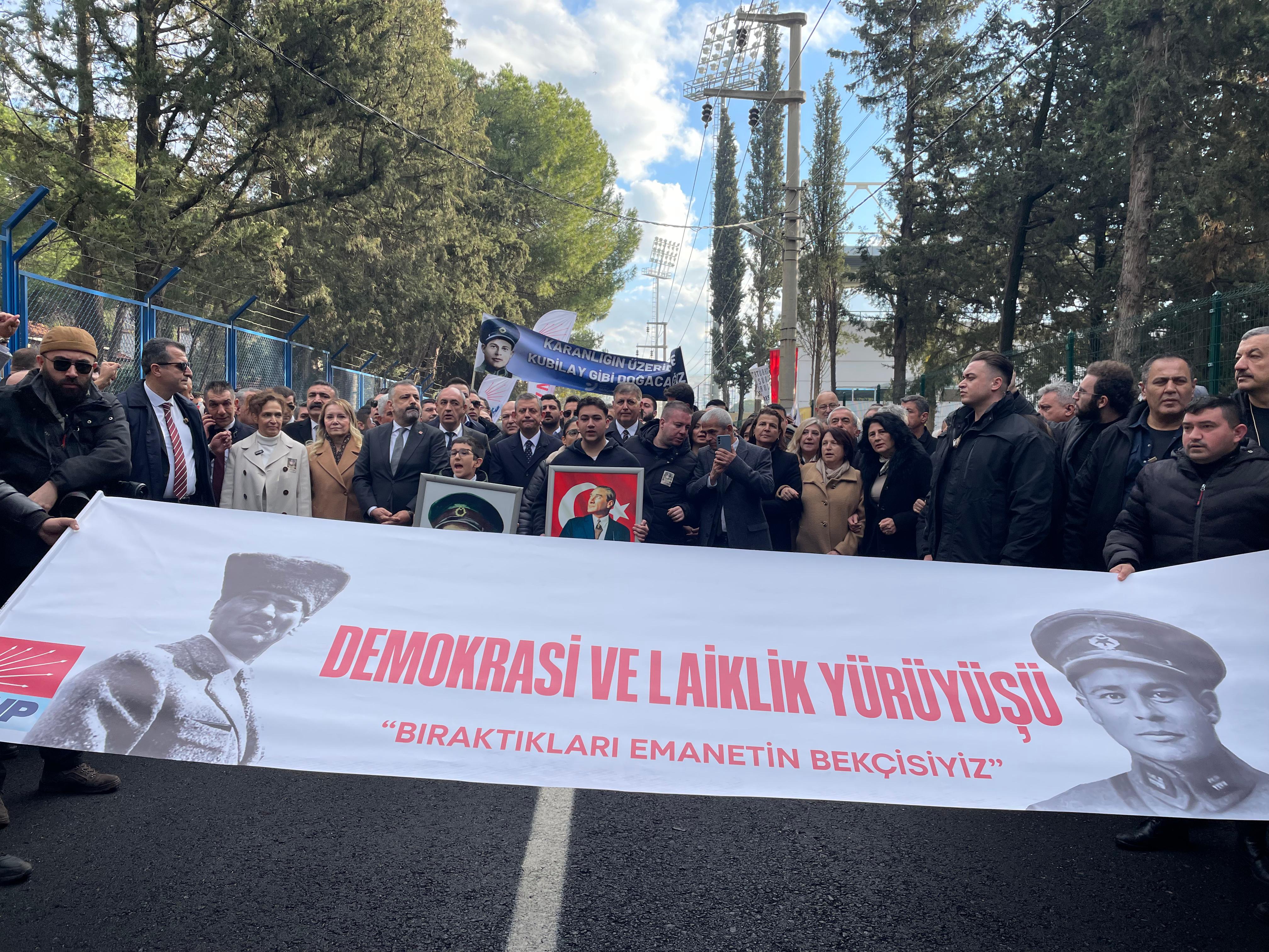 ÖZEL: BUGÜN DE KUBİLAY’LAR HEPİMİZİ UMUT VERMEK ZORUNDALAR Teğmenler olayı hakkında konuşan Genel Başkan Özel, Bunu çok önemsiyorum. Bugün burada CHP genel başkanı olarak bulunmak ve en üst dizey katılımı göstermeyi önemsiyorum. Mümkün olan Türkiye Cumhuriyeti tarihindeki tüm yıl dönümlerinde mutlaka o anlamlı kentlerde mekanlarda olamaya çalışıyorum. Bir de Cumhuriyet’e karşın yapılmış kalkışmalarda. Böyle bir günde burada olup karalılığımız göstermeyi son derece önemsiyorum. Şehitlerimizin anısına sahip çıkmak için buradayız. Hepimizi birbirimize omuz ve umut vermek için buradayız. Birilerine kaygı vermek üzere buradayız. 94 yıl önce gericiler tarafından katledildiler. Kubilay Asteğmen olarak 1930 yılında Menembn3’deydi. 2 bekçi de onla birlikteydiler. Ellerinden gelse Mustafa Kemal Atatürk’ü öldürmeyi amaçlayan bir çetenin karşısındalardı… Derviş Mehmet’in durdurma görevi Asteğmen Kubilay’daydı. Cansız bedenine işkence yaptılar ve canavarca bir hisle başını kesip Menemen sokaklarında gezdirdiler. Kubilay’ın basını göstererek genç cumhuriyete meydan okuyorlardı. Oysa Kubilay kesik başı ile onun gibilere meydan okuyordu. Kubilay diyordu ki ‘bu başı veririz ancak sizin gibilere boyun eğmeyiz’… Bugün de Kubilay’lar hepimizi umut vermek zorundalar. Hepimizi gururlandıran yılın ve törenin şahidi olduk. Bu sene 3 kuvvetlerinde birincisi genç kadınlardır. Bunları görünce dedik ki işte Mustafa Kemal’in ordusu, Türkiye’de kadın erkek eşitliğine en çok inanan Atatürk’ün ordusunun geldiği notkaydı. O gün hepimizin gururlanarak izlediği tören önce sosyal medyada, sonra yazılı basında, trol orduları ile linç kampanyasına giriştiler. Böyle bir kampanyanın toplumsal tabanı olmayacağından emindik. Ancak siyasette benimseneceği bunu üzerinden siyasi çıkar olarak kullanılacağı, teğmenlerin yapmış oldukları andı disiplinsiz olarak gösterileceği hiç aklımın ucundan geçmezdi. Atatürk’ün görev yaptığı Cumhurbaşkanlığı koltuğunda bugün oturan Erdoğan 8 gün sonra bir siyaset konusu yapmaya, gencecik teğmenlerin onca emeğini çöpe atmaya, onların geleceğini karartmaya tenezzül etti” diye konuştu. MUSTAFA KEMAL’İN 1 TANE ORDUSU VAR