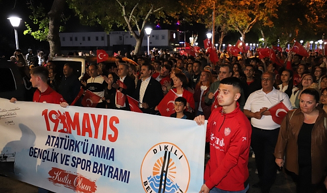 Dikili Atatürk Meydanı’nda siyasi partiler, sivil toplum kuruluşlarının katıldığı çelenk sunma programı sonrasında akşam saatlerinde Dikili Belediyesi bünyesinde düzenlenen Gençlik Yürüyüşü’ne binlerce vatandaş katıldı. Nazım Hikmet Parkı önünden başlayıp 75. Yıl Parkı’nda sona eren yürüyüş sonrası gerçekleşen Manuş Baba Konseri ile bayram coşkusu doruğa ulaştı.Gençlik Konseri öncesinde 75. Yıl Parkı’nda vatandaşlara seslenen Dikili Belediye Başkanı Adil Kırgöz, “Ebedi Başkomutanımız, ulusumuzun kurucusu Gazi Mustafa Kemal Atatürk benim doğum günüm 19 Mayıs diyerek böyle özel bir günü gençlere armağan etmiştir. 'Bütün ümidim gençliktedir.' diyen Ulu Önderimizin ilke ve devrimleri ışığında siz gençlerimizin Cumhuriyet’imize sahip çıkacağına inancım sonsuz. Sizler geleceğimizin teminatı, yarınlarımızın umudusunuz. 104 yıl önce bugün Samsun’a ayak basıp Milli Mücadele’nin temellerini atarak eşsiz ülkemizi bizlere armağan eden Yüce ATA’mız başta olmak üzere tüm yol arkadaşlarını saygı ve minnetle anıyor, 19 Mayıs Atatürk’ü Anma Gençlik ve Spor Bayramı’mızı kutluyorum.” dedi.Levent Kömür