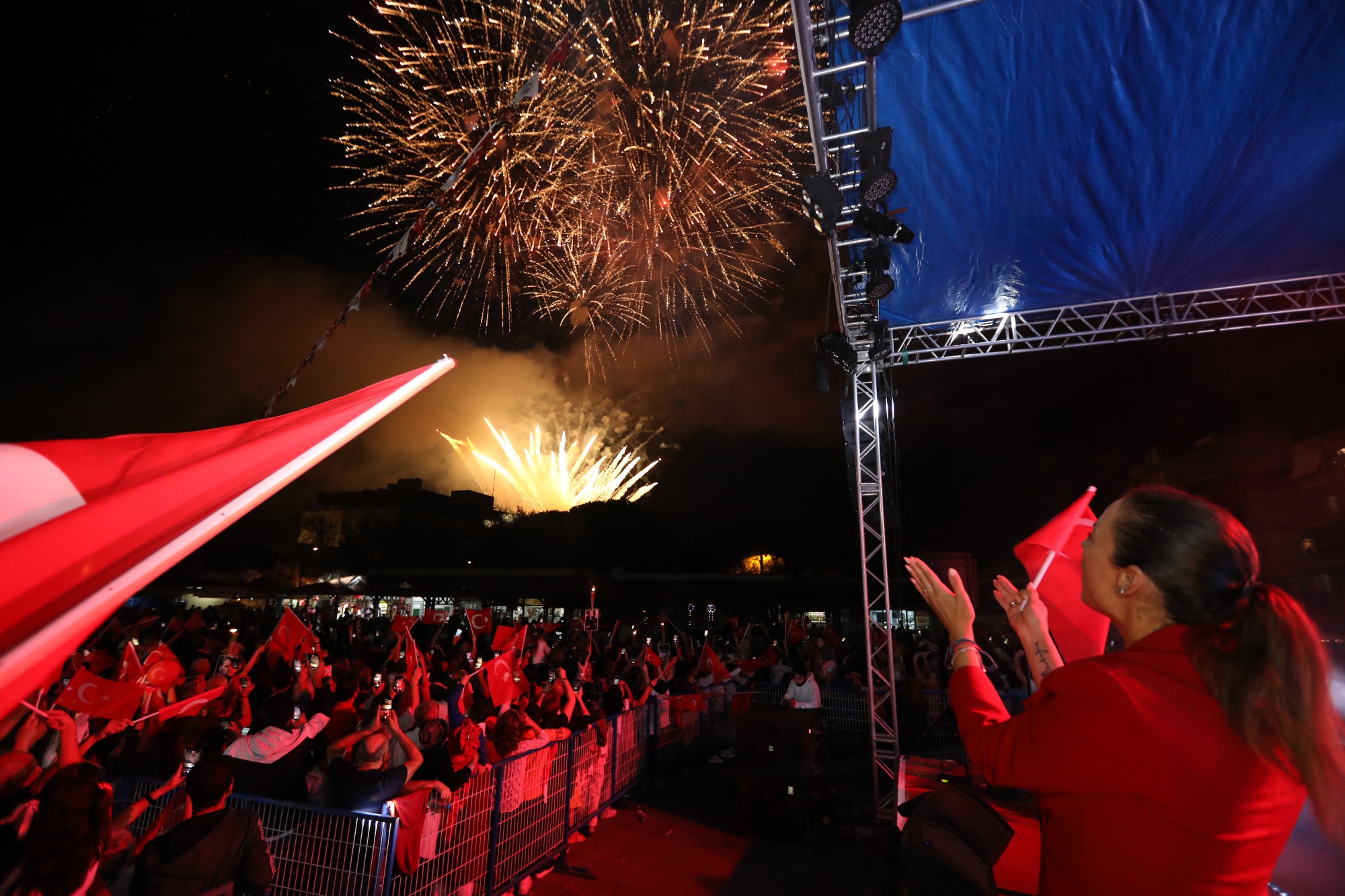 Belediye Başkanı Filiz Ceritoğlu Sengel’in ardından Suavi sevilen birçok şarkı ve türküyü Efes Selçuklular ile birlikte seslendirdi. Şarkılarını söylerken Efes Selçuklular ile de sohbet eden Suavi barış vurgusu yaparak; “Cumhuriyet Atatürk ilke ve devrimleridir. Cumhuriyet aynı zamanda barıştır ve çocuklara barış içinde yaşam hakkı vadetmektir. Sanatın bu kadar incitildiği, çocuklarımızın sevgiden yoksun bırakıldığı bir zamanda çocuklarımızı sabır, sevgi ve bilgi ile büyütemezsek 100. yıla ihanet etmiş oluruz. Çünkü Cumhuriyetin temel kavramları bilim ve eğitimdir. Aynı zamanda sanat ve estetiktir. Bu anlamda biz Cumhuriyeti savunurken savaşa karşıyız, barıştan yanayız” dedi.