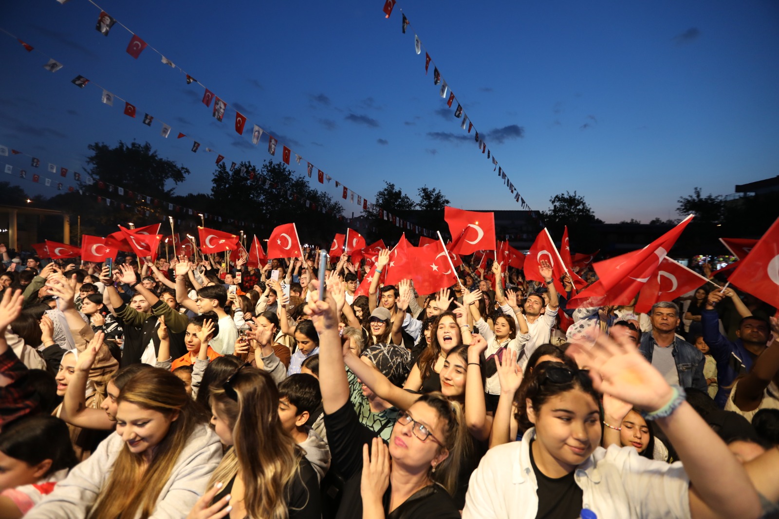 Sırbistan, Ukrayna, Moldova ve Litvanya’dan gelen 5 halk oyunu ekibi ile Efes Selçuk’tan üç ekibinin İstasyon Meydanı’nda gerçekleşen gösterileri ilgiyle izlendi. Farklı kültürleri halk oyunlarıyla buluşturan gösterilerin ardından Efes Selçuk Belediye Başkanı Filiz Ceritoğlu Sengel ve her yaştan Efes Selçuklu’nun katılımıyla İstasyon Meydanı’ndan Fener Alayı Yürüyüşü başladı. Bayraklar ve meşalelerle yürüyen Efes Selçuklular’a yurttaşlar da bayraklarla balkonlarından eşlik etti. Bayraklarla, marşlarla 19 Mayıs coşkusunu kent sokaklarına taşıyan Fener Alayı Yürüyüşü’nün Pazar Yeri’nde sona ermesinin ardından Rap Sanatçısı Eypio Konseri ile kutlamalar devam etti.MÜZİĞİN SUSMASINI İSTEMEYENLERİZ BİZLERÖzellikle gençlerin yoğun ilgi gösterdiği konserde sahneye çıkarak Eypio’ya teşekkür eden Efes Selçuk Belediye Başkanı Filiz Ceritoğlu Sengel, “Müziğin susmasını istemeyenleriz bizler. Gençler umutla geleceğe baksın isteyenleriz. Cumhuriyetin değerleri sonsuza kadar payidar olsun isteyenleriz. Ama sizler sayesinde olacak bu. Çünkü demokrasiyi getirecek olanlar da sizler olacaksınız bu ülkeye, adaleti getiren de sizler olacaksınız. Ama her şeyden önce bunu hiçbir zaman unutmayın. Bundan tam 104 yıl önce Gazi Mustafa Kemal Atatürk sadece 30’lu yaşlardayken milletin bağımsızlığı yine milletin kararlılığı ile olacaktır diyerek çıktı yola. Ülke yoksuldu, yoksundu. Ne saltanata kendini dayadı ne de sultanlara. Tek dayanağı halktı. Sizlerin halk olarak Cumhuriyete sahip çıkacak gençler olduğunuzu düşünüyorum. Atatürk ilke ve inkılaplarını yaşatacak olan gençler olduğunuzu düşünüyorum. İşte bu yüzden alkışların Gazi Mustafa Kemal Atatürk’e gideceğini düşünüyorum. İşte buz yüzden alkışların Cumhuriyete gideceğini düşünüyorum. İşte bu yüzden alkışların aydınlık ve çağdaş yarınlara gideceğini düşünüyorum. Size ihtiyacımız var gençler, gelecek için size ihtiyacımız var. Cumhuriyet asla sadece siyasilere bırakılacak kadar kıymetsiz değil. Halk sahip çıksın” dedi.