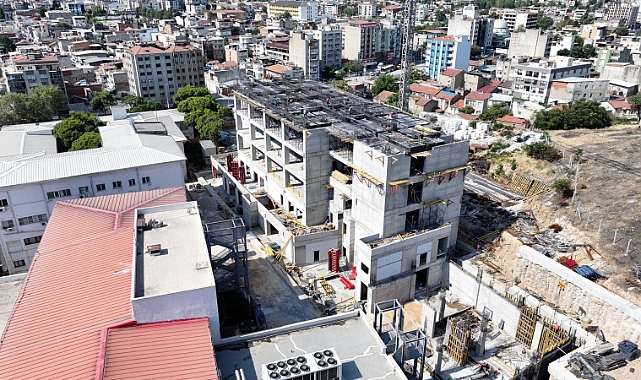 İzmir Büyükşehir Belediyesi’nin 549 milyon liralık yatırımla hayata geçirdiği Eşrefpaşa Hastanesi ek hizmet binasında beşinci katın beton dökümü sürüyor. Depreme dayanıklı inşa edilen yapının 2025 yılı sonunda tamamlanması hedefleniyor.