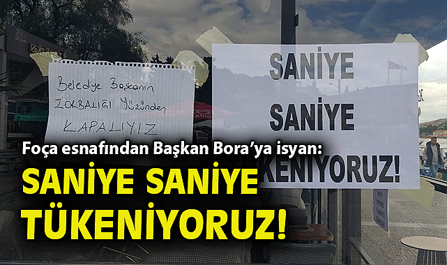 Esnaf afişlerde, “saniye saniye tükeniyoruz”, “Foça’nın tek derdi esnaf sanki”, “özür dileriz hizmet veremiyoruz belediye başkanımız sağ olsun”, “sandalye ve masalarımızı geri istiyoruz”, “belediye başkanının zorbalığı yüzünden dükkanımız kapalıdır” sözlerine yer verdi.Çiğdem Canpolat