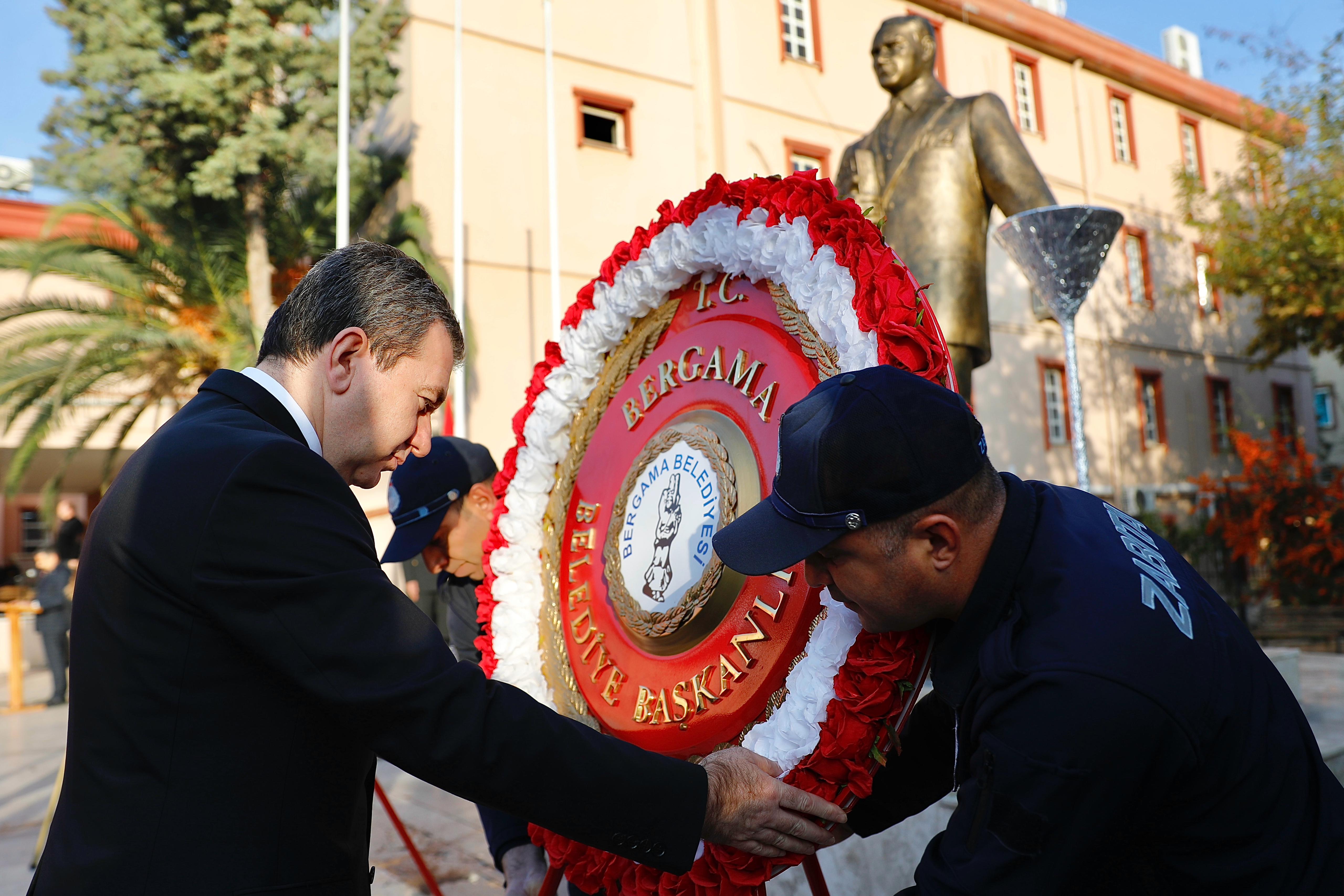 Çelenk sunumuyla başlayan anma töreninde saat 09.05'te siren sesleri eşliğinde saygı duruşu yapıldı ve İstiklal Marşı okundu. Bergama Kültür Merkezi’nde devam eden Anma programı günün anlam ve önemine ilişkin yapılan konuşmalar ile başladı.