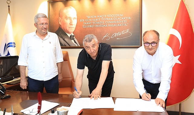 protokollere imza atıyor.Önce Özel Atagöz Tıp Merkezi ile yapılan protokolde Güzelbahçe
