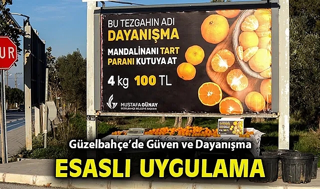 Uygulamayla ilgili konuşan Güzelbahçe Belediye Başkanı Mustafa Günay, sistemin temelinde karşılıklı güven ve paylaşma kültürünün olduğunu vurgulayarak şunları söyledi, “Bu uygulama ile hem üreticimizin emeğini doğrudan destekliyor hem de komşuluk ve güven duygusunu yeniden hatırlatıyoruz. Vatandaşımız mandalinasını alıyor, tartıyor ve parasını kutuya bırakıyor. Kimseyi denetleyen bir göz yok; burada esas olan vicdan, dayanışma ve birbirimize duyduğumuz güven, aracı olmadan yapılan bu satış modelinin hem üretici hem de tüketici açısından adil bir sistem. Güzelbahçe’de paylaşmayı, dürüstlüğü ve emeğe saygıyı büyütmek istiyoruz. Bu uygulama bir satış yöntemi değil; toplumsal bir mesajdır. Dayanışmayı çoğaltan, insanlara güvenin önemli olduğunu, Güzelbahçeli hemşehrilerimizin güveninin bizlerin için önemli ve kıymetli olduğunu burada göstermiş olacağız” diye konuştu.