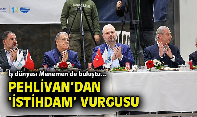 Menemen Belediyesi tarafından bu yıl ikincisi düzenlenen "İş dünyası Menemen'de buluşuyor" etkinliğinde konuşan Belediye Başkanı Aydın Pehlivan, "Göreve geldiğimiz ilk günden beri en önemli konularımızdan biri istihdam oldu. Çünkü istihdamın olduğu yerde refah olur, sanat, spor, umut, huzur ve bereket olur. Bu nedenle Menemen'imizin ve ülkemizin büyümesine, kalkınmasına yaptığınız katkılar çok kıymetlidir." ifadelerini kullandı.